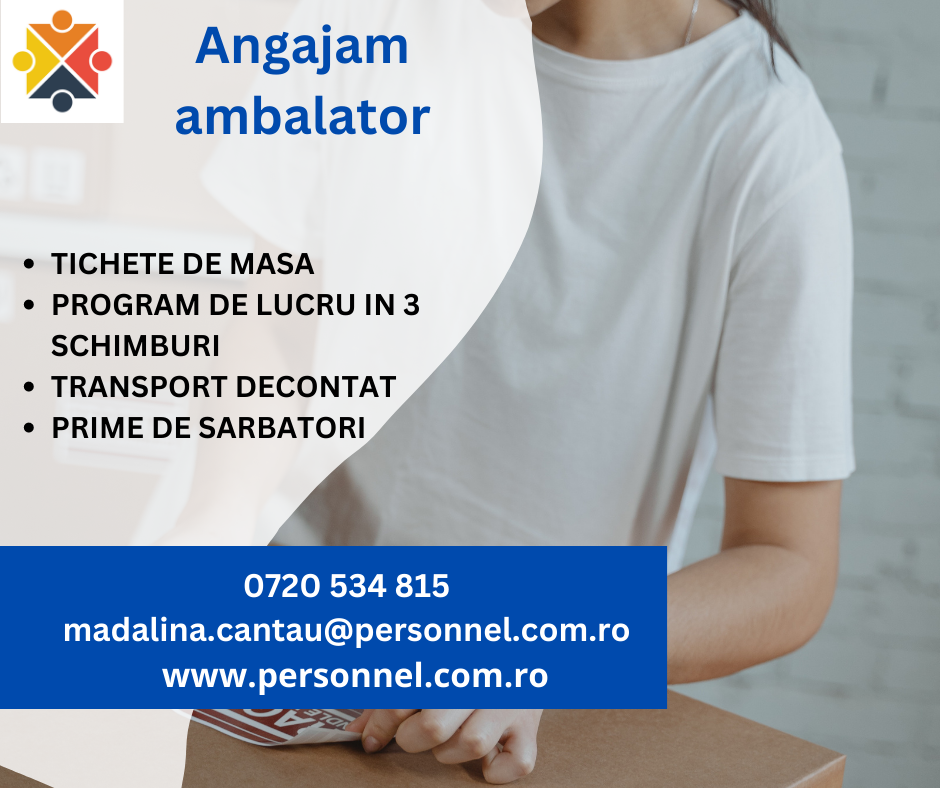 Cautam pentru o fabrica producatoare de ambalaje din mase plastice din Bucuresti, ambalator manual. Daca sunteti interesat de aceasta oferta, asteptam sa ne contactati la: