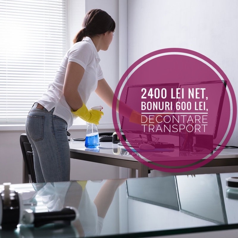 firma de curatenie angajam la program 8 ore, L- V de la 6:00 dimineata. Salariu 2.400 net, bonuri 600 Lei, decontare transport. Cerem obligatoriu seriozitate