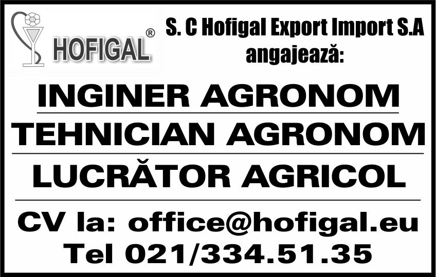 angajeaza: Inginer agronom, tehnician agronom, lucrator agricol. CV la email.