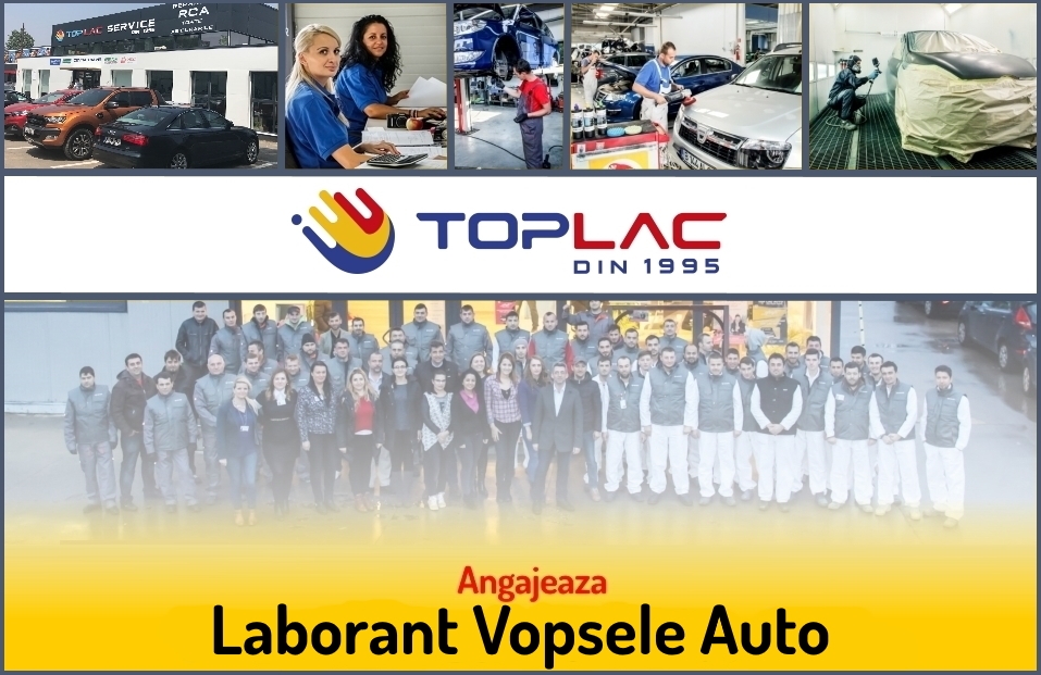 suntem in proces continuu de extindere a echipei si vizam recrutarea de personal pentru pozitia de Laborant Vopsele Auto. Salariu Net: 4000 lei. Te asteptam la Top Lac Service.