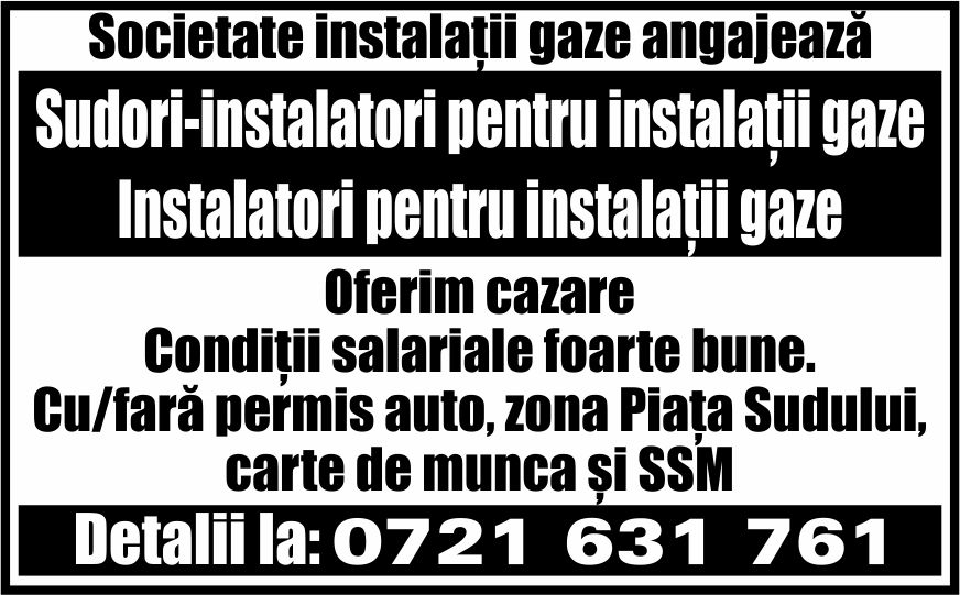 pentru societate instalatii gaze. Oferim cazare.