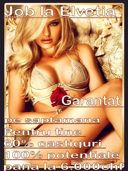 5000 de franci/saptamana. Te invitam sa castigi o multime de bani, fara riscuri, intr-o atmosfera foarte placuta. Avem un studio de masaj si unul erotic. Mai multe detalii la 0041793963326
