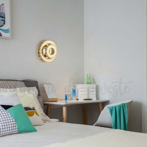 Aplica LED 40W Krystal Double Round Auriu, LED inclus, 2 surse de iluminare, Lumina: Cald, Natural,