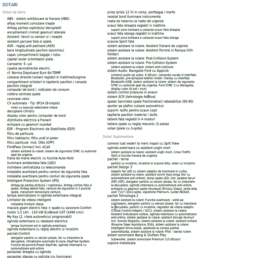 Optiuni confort: Geamuri electrice Oglinzi incalzite Aer conditionat Inchidere centralizata Parbriz incalzit Scaune incalzite Comenzi volan Pilot automat Senzori parcare Usi 4+1 Computer bord Oglinzi electrice Radio cd Sistem navigatie Volan reglabil