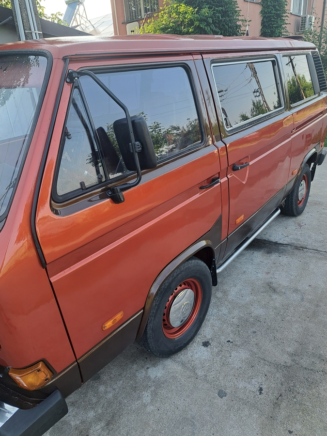 Vand VW T3 an fabricatie 1984, motor 1.9 diesel, CV 3H, usi laterale culisante, scaune cu cotiere, bord cu turometru functional, canapea spate rabatabila, bulbar+ proiectoare zi/ceata, scarite prag din inox, spoiler etc..