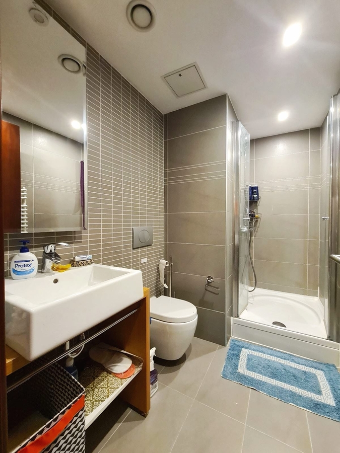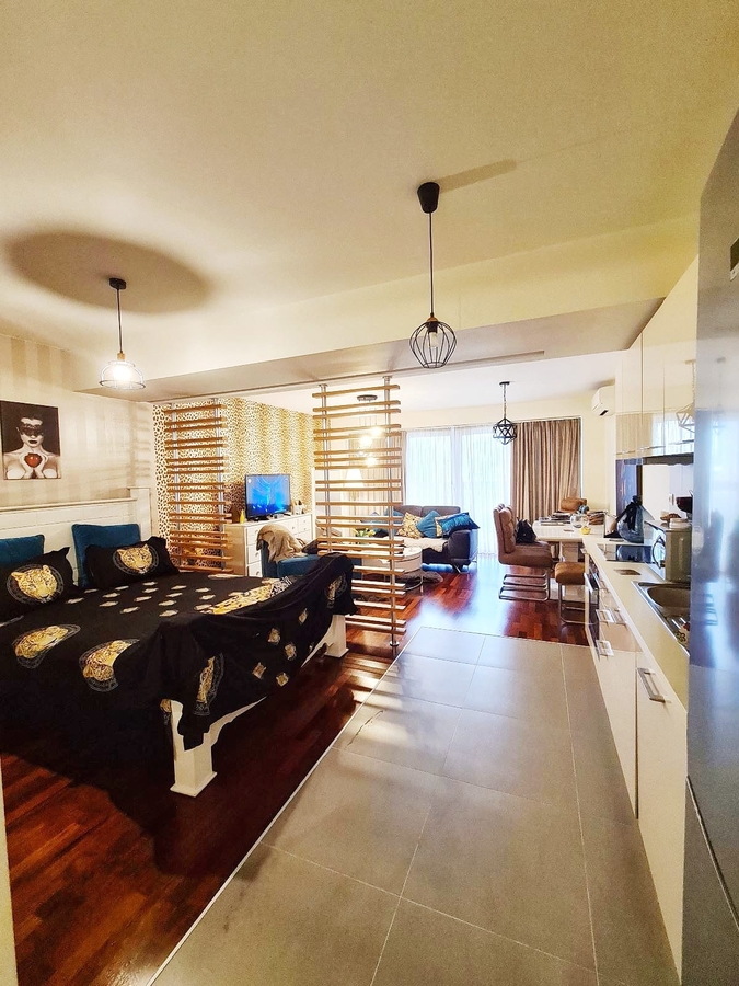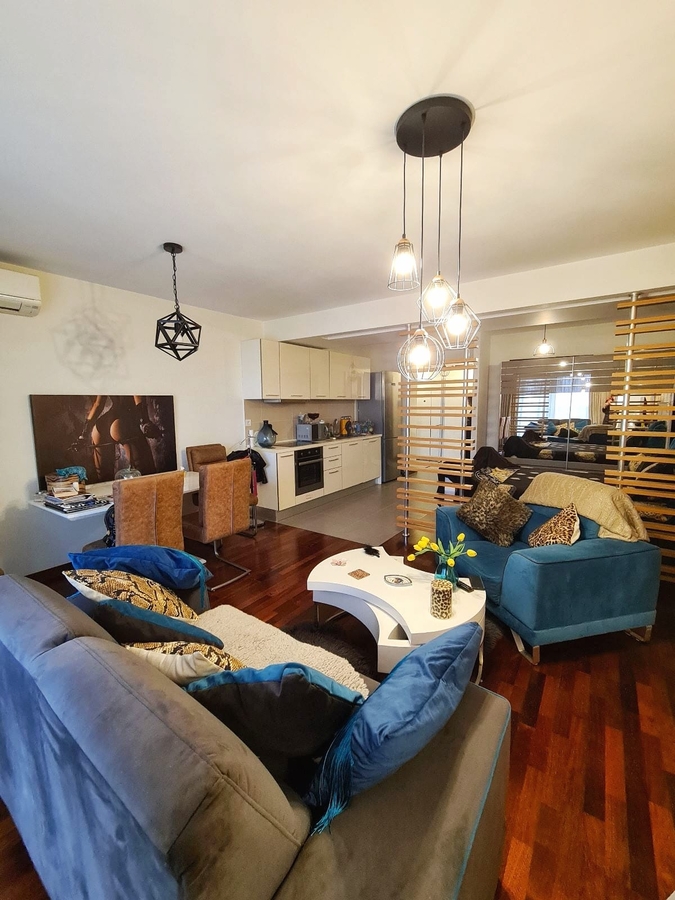 Lifturile sunt noi, scara este curata si are camere video. Imobilul are toate imbunatatirile, inclusiv Centrala Proprie de apartament, Masina de Spalat Vase, Aer Conditionat, contorizat, instalatii noi, TV Smart, mobilat Arrital Cuccine Italia pe comanda, instalatii si obiecte sanitare noi Franke, cu pat matrimonial si canapele, utilat complet totul modern in stare foarte buna.