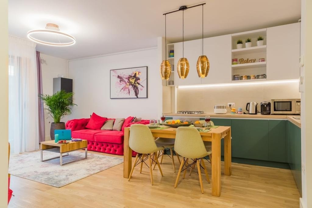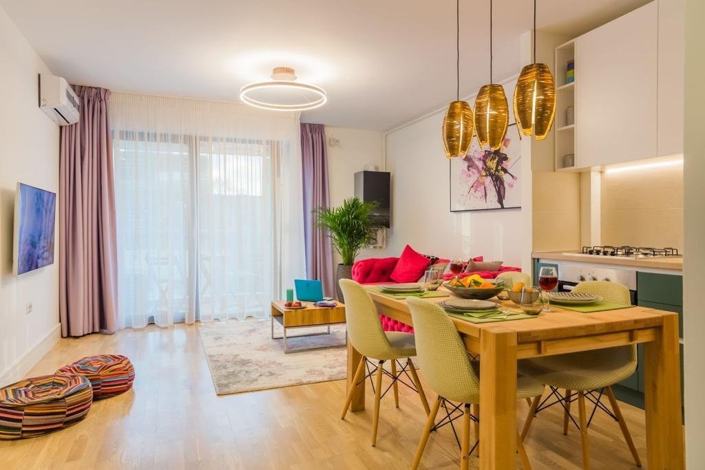 Apartamentul este complet mobilat si utilat, cu finisaje moderne si de calitate: