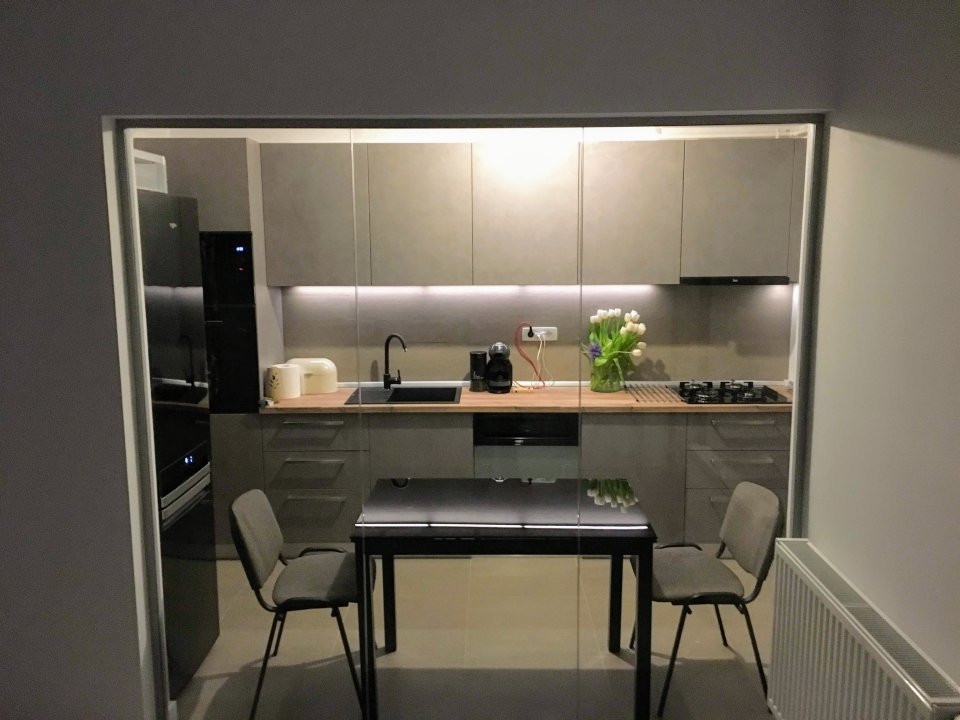 Apartamentul are o suprafata de 60 mp si este compus din living si bucatarie, un dormitor, o baie si balcon.