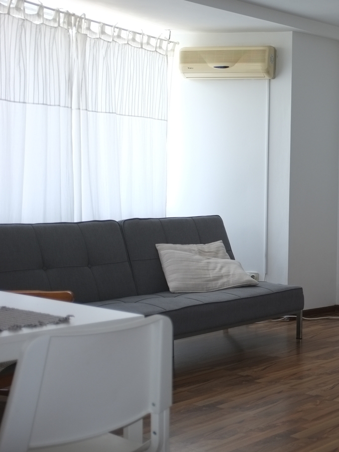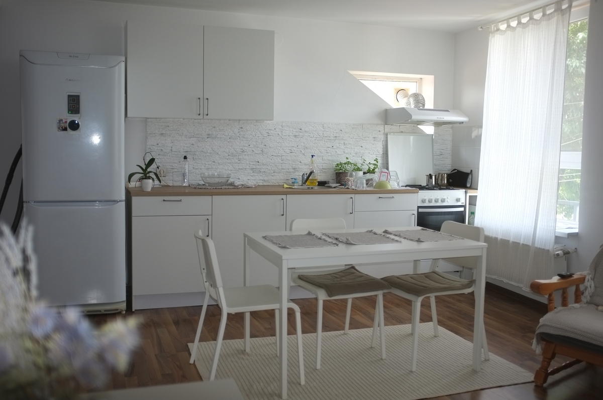 Open space de 40mp ideal pentru lucrul de acasa, cu iluminare naturala prin 2 ferestre largi umbrite de copaci, ventilare naturala (ferestre pe laturi opuse N-E fatada, S-V spate), loc de parcare pe strada. Dormitor de 14mp si baie cu dus de 5.5mp.