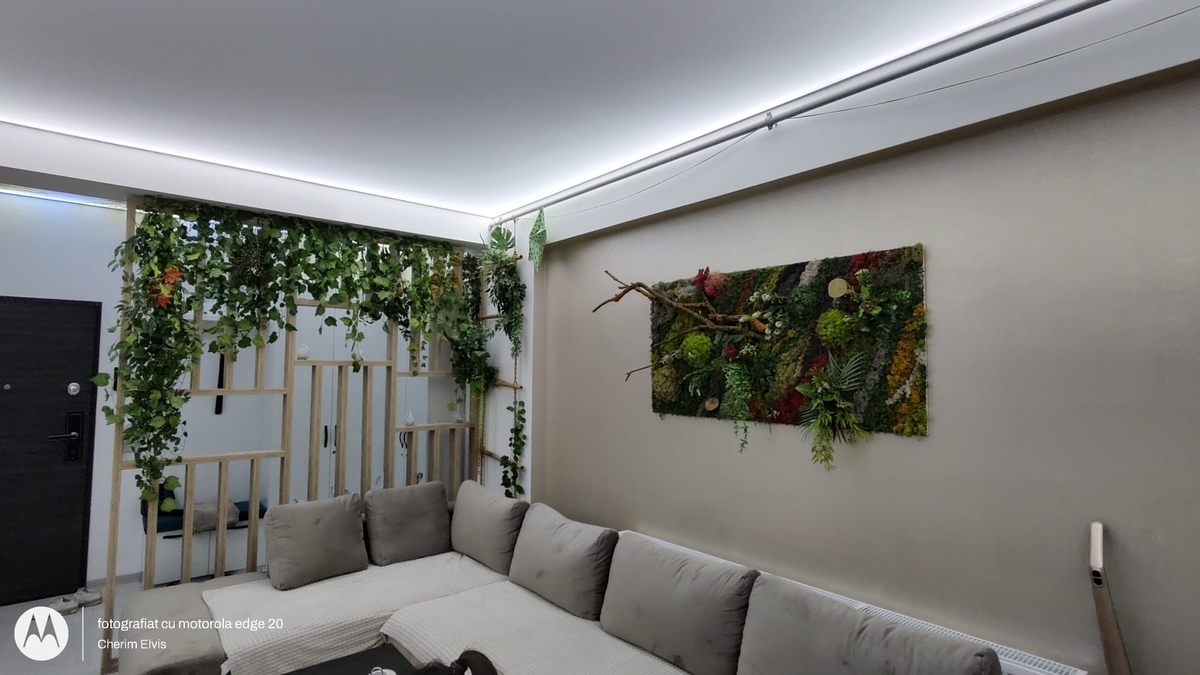 Livingul dispune de un coltar mare in forma de U extensibile.