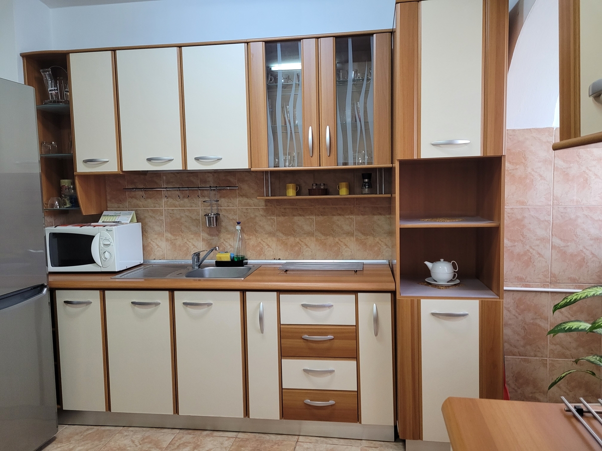 Mobilat si utilat complet cu: combina frigorifica, cuptor cu microunde, filtru cafea, espressor capsule, aragaz, hota, masina de spalat, aspirator, masa si statie calcat, AC in ambele camere, TV plasma si sistem home cinema si 2 televizoare Led smart.