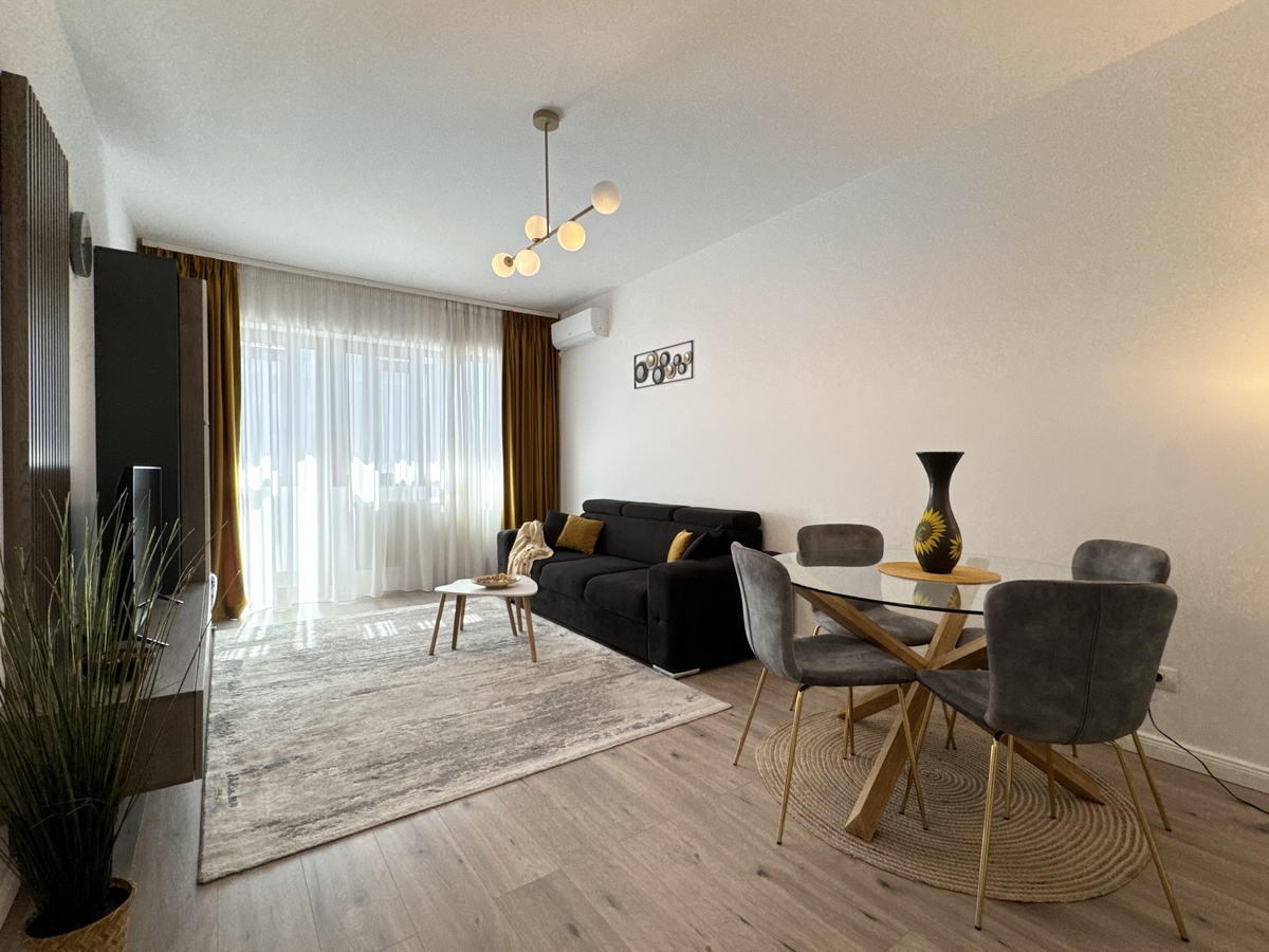 Livingul este luminos si bine organizat, incluzand o zona de dining, canapea extensibila si acces direct catre balcon. Apartamentul dispune de cate un televizor in fiecare camera, fiind pregatit pentru mutare imediata, iar acesta este igienizat si gata de mutare.