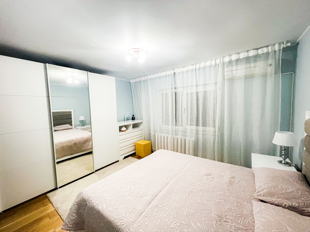 proprietar inchiriez apartament 2 camere zona Decebal, confort 1, decomandat, etaj 4/4. Apartamentul este complet utilat (masina de spalat, aragaz, frigider, TV Sony Bravia, Aspirator iRobot, espresor Nesspreso, prajitor paine, aer conditionat. Apartamentul este proaspat renovat si mobilat modern (mobila Mobexpert). Aproape de metrou Piata Muncii (6 minute). Nu se accepta animale de companie,