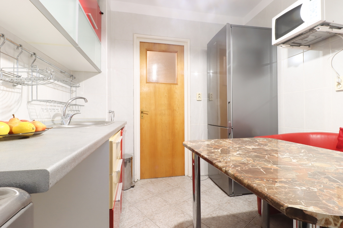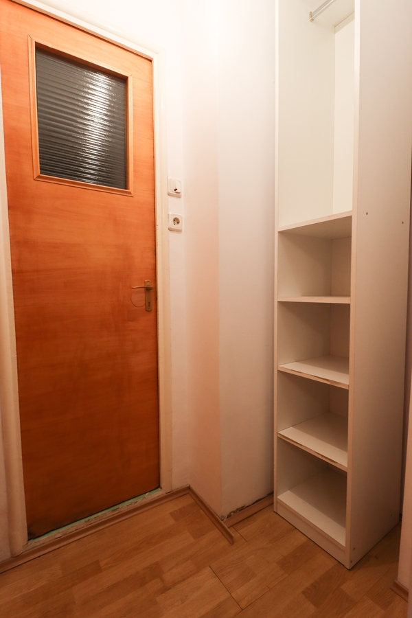 In living se afla o canapea si doua fotolii confortabile, o biblioteca si doua corpuri de mobilier cu compartimentari. Din living aveti acces la balconul cu geamuri termopan, amenajat cu un dulap cu rafturi .Dormitorul este luminos. Un pat dublu, un mobilier compartimentat dispus pe toata lungimea peretului, un dulap si un birou configureaza aceasta incapere. Bucataria are toate dotarile de trebuinta.Mai mult,este un spatiu foarte placut de socializare, cu bancheta tip coltar si o masa mare. Baia are cada, un dulapior suspendat, masina de spalat rufe si ventilator. In holul dinspre baie este un mobilier cu rafturi pentru depozitare, iar in holul de la intrare se afla un dressing cu oglinda.