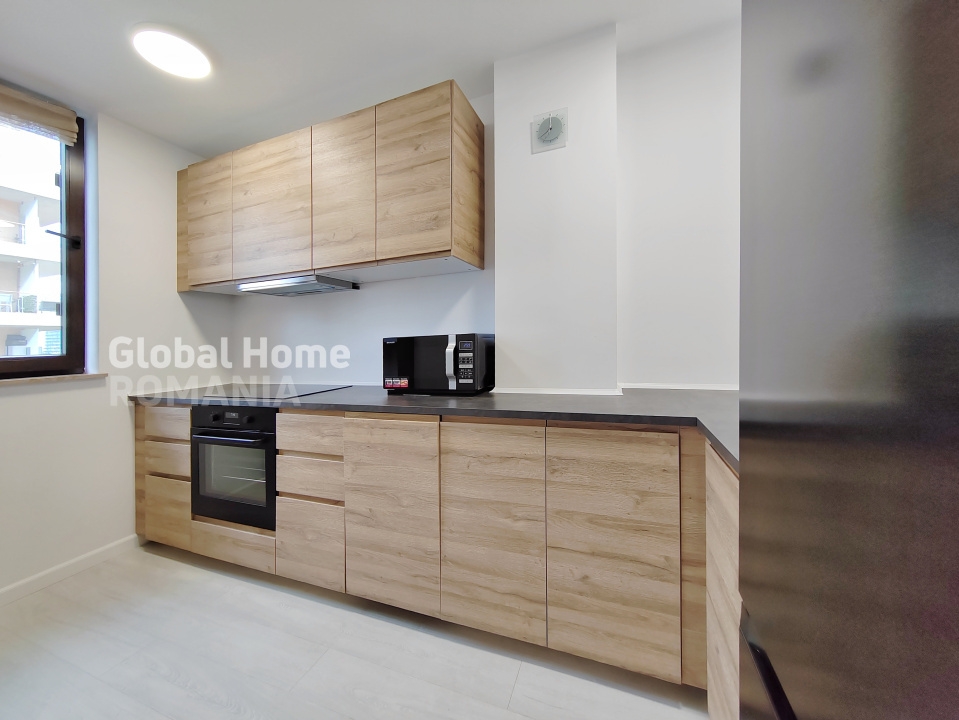 The property features a large balcony, comes fully furnished with a fully equipped kitchen, and includes an underground parking space. The area provides quick access to Herastrau Park (3 min), Aurel Vlaicu metro (7 min), Promenada Mall (12 min), as well as numerous office buildings, restaurants, and cafés.