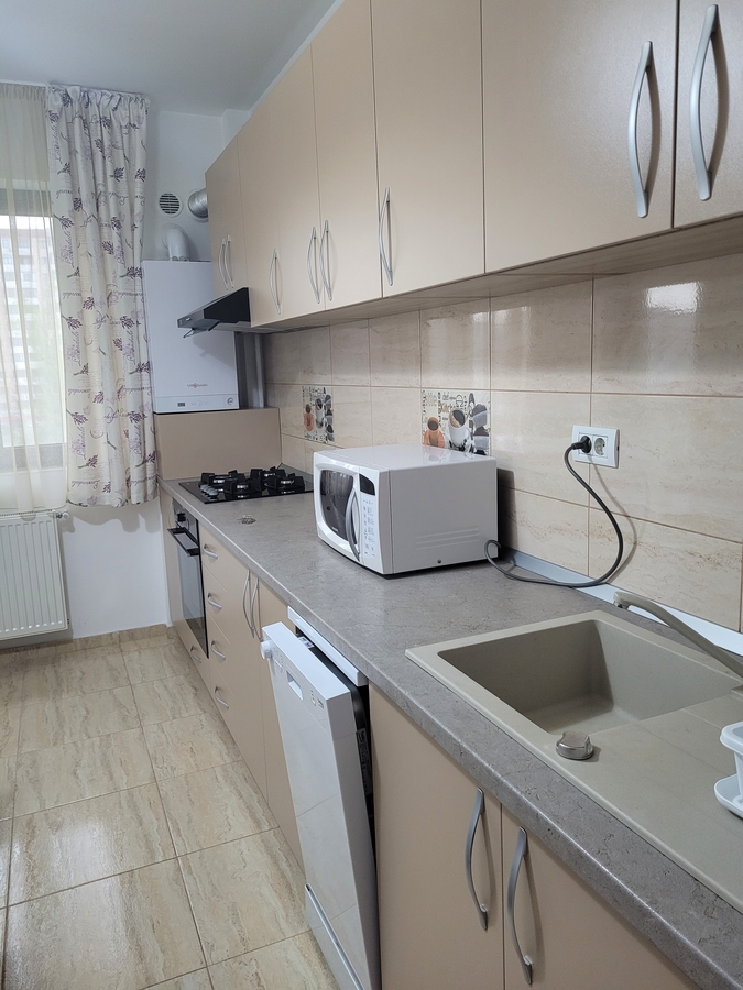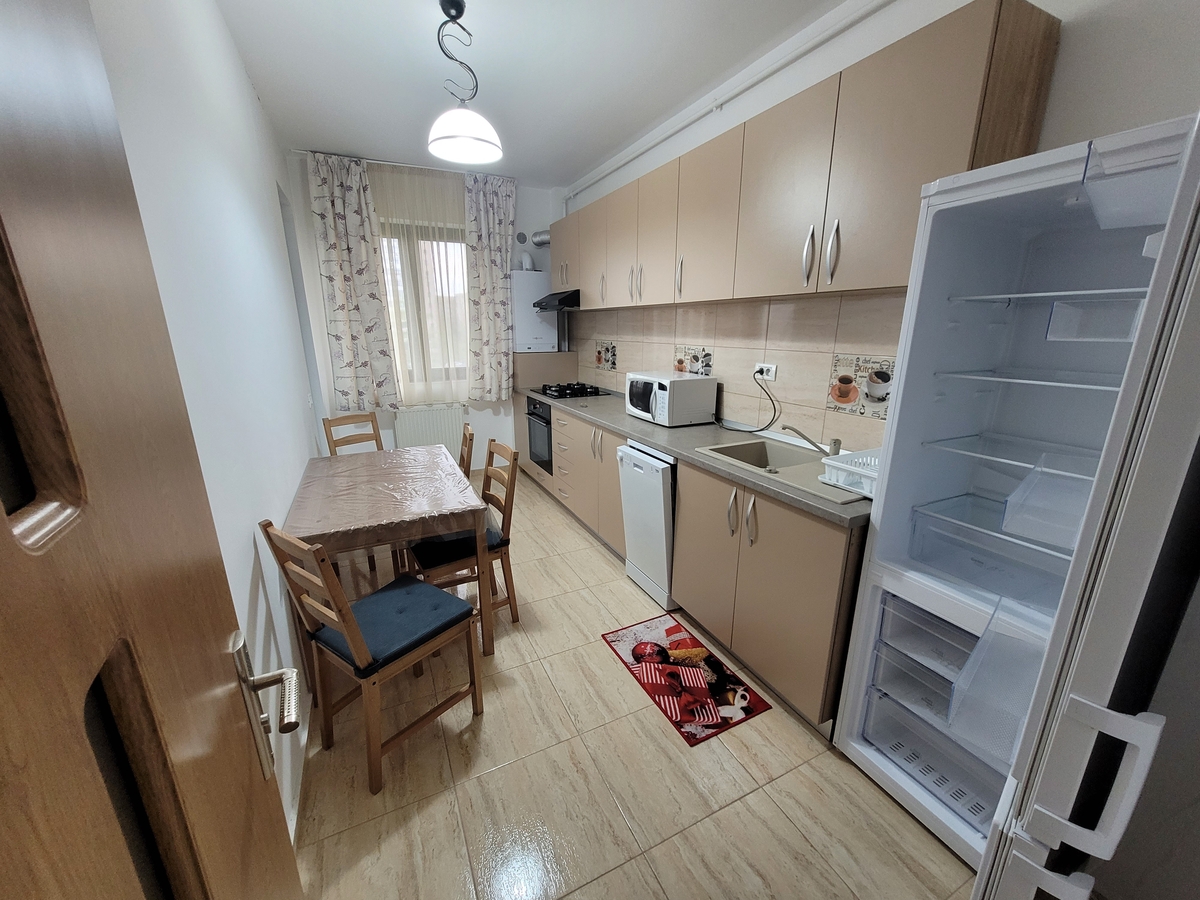 Apartamentul dispune de multiple imbunatatiri, centrala termica proprie pe gaz cu termostat de ambient, aer conditionat, mobilat si utilat complet (LCD TV, masina de spalat rufe cu uscator), totul este nou, zugravit nou si igienizat, bucataria este inchisa si este utilata complet (frigider, plita pe gaz, hota, cuptor electric, masina de spalat vase) mobilata modern.