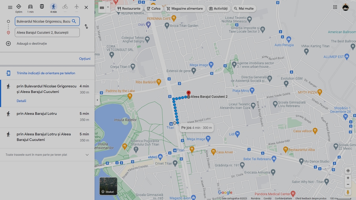 Inchiriez apartament cu 2 camere 60 mp, semidecomandat, cu balcon, la 4 minute de mers pe jos (300 metri conform print screen atasat de pe google maps) de Metrou Titan, intrarea din Parcul Titan, pe Aleea Barajul Cucuteni, etaj 2/4.