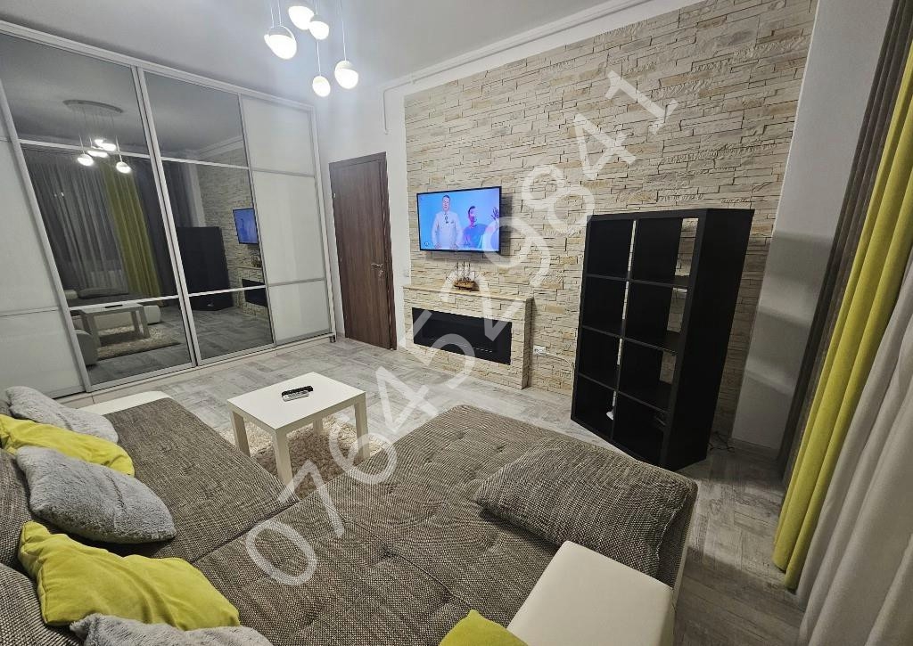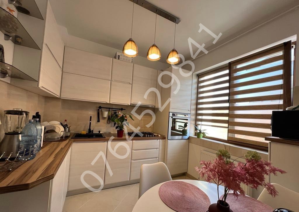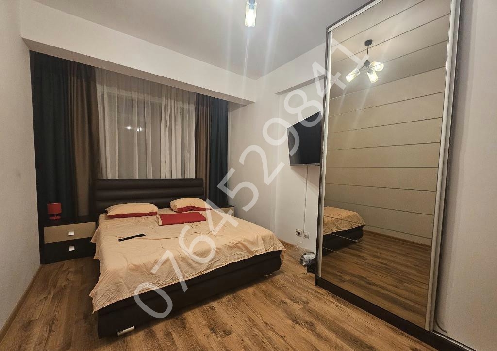 Balcon inchis in termopan si incalzit cu calorifer,centrala termica,aer conditionat, 2 televizoare smart,canapea imensa extensibila in living,pat matrimonial in dormitor,2 dressing-uri unul in domitor si unul in living imens pe toata suprafata peretelui,zona birou work from home,spatii depozitare,plita pe gaz+cuptor electric+hota+masina de spalat vase incorporate,cuptor cu microunde,masina de spalat rufe,combina frigorifica.