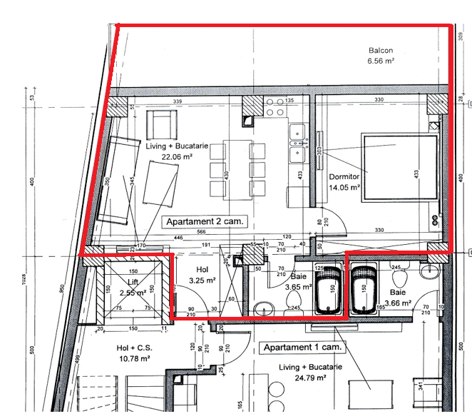 - living (22 mp): biblioteca, canapea extensibila mobila, televizor, internet, covor, draperii;