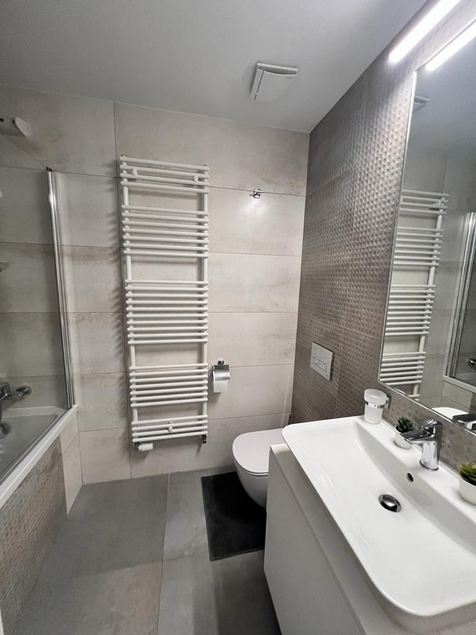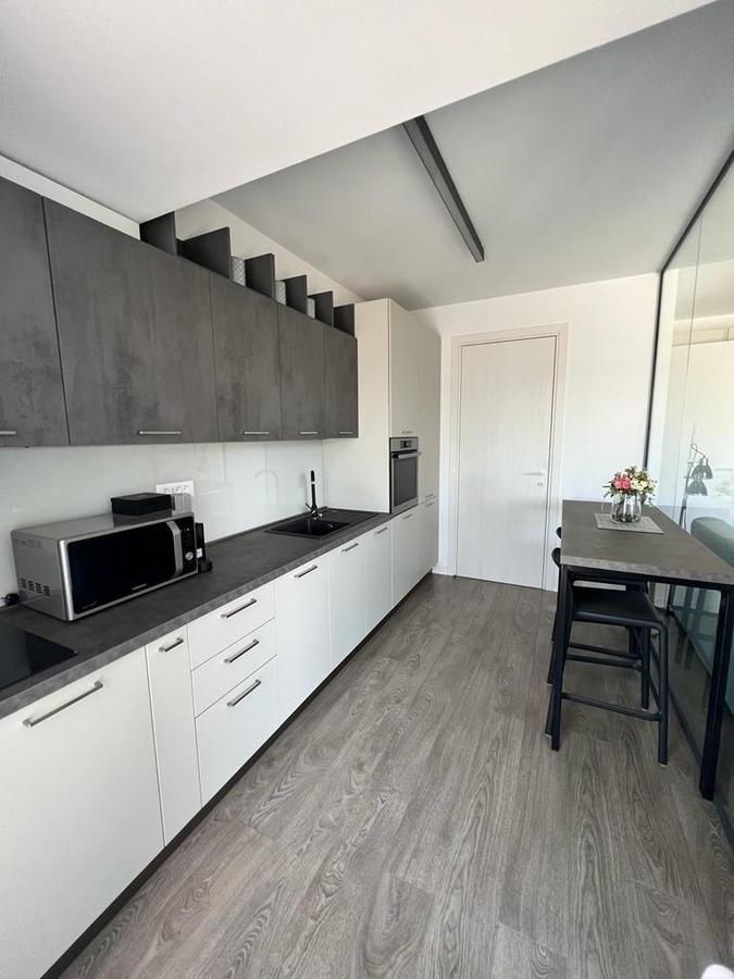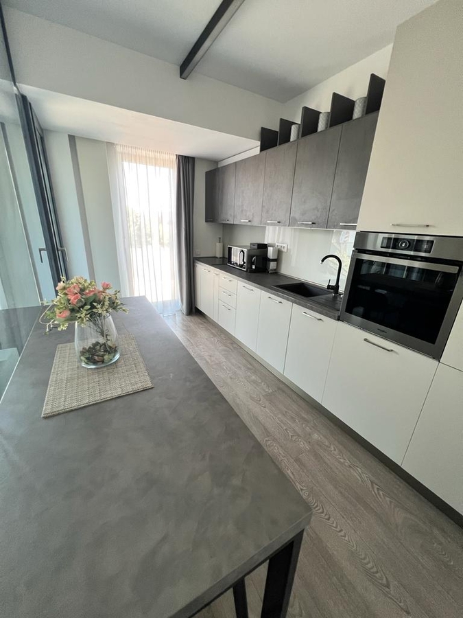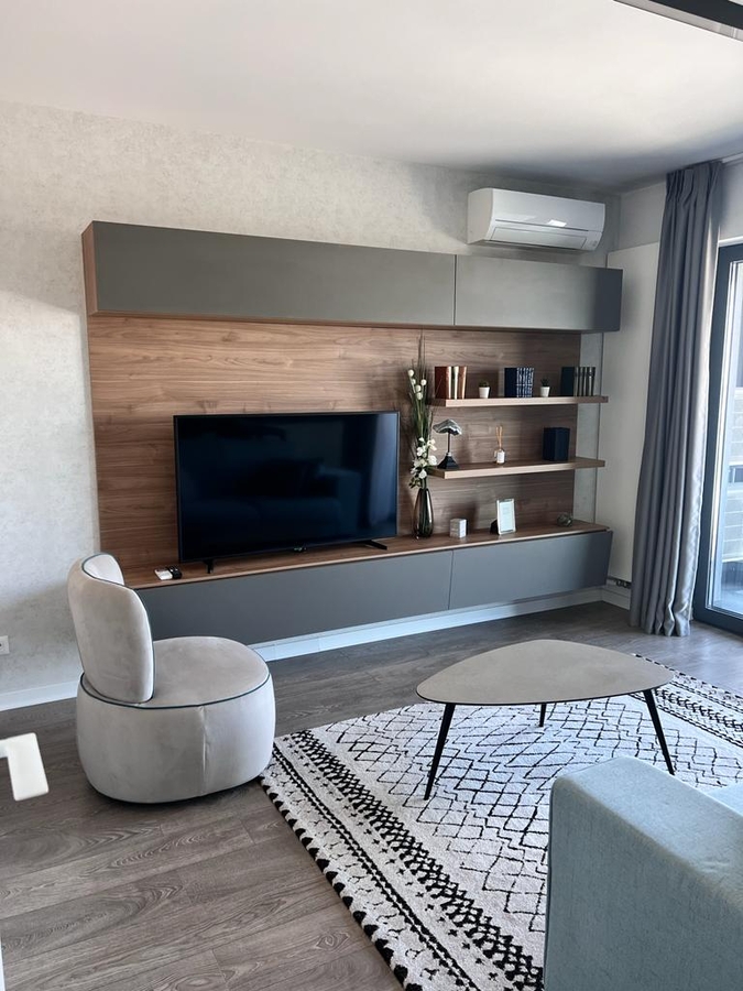 Apartamentul a beneficiat de un proiect de design personalizat, cu accent pe calitatea materialelor si atentie la detalii. Finisajele premium, electrocasnicele atent alese, mobila italiana si suprafetele vitrate mari creeaza un spatiu elegant si primitor, cu toate facilitatile moderne pentru o locuinta confortabila dar si ca spatiu de lucru, daca lucrati de acasa.