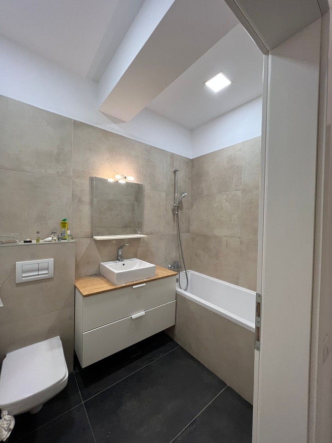 Christian Estates proposes you, for rent, a spacious apartment 1( BHK) 68 sqm, detached, furnished, equipped with furniture and high quality appliances, underfloor heating - balcony terrace type - located on the ground floor of a new building built on Sabinelor Street - JW Marriott area.