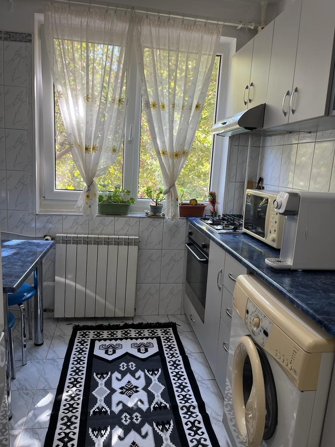 Apartamentul detine masina spalat vase si rufe, combina frigorifica noua, cuptor microunde, plita, cuptor, aer conditionat. Mobila sufragerie si birou, canapea extensibila, dormitor pat dublu 160-200m, birou, comoda Tv. Pentru vizionari dupa ora 18. Nu primim animale de companie.