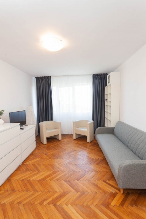 Situat in cel mai verde sector al Bucurestiului, la 3 minute de mers pe jos de Park Lake Mall si de Parcul Alexandru Ioan Cuza, acest apartament impresioneaza imediat ce-i treci pragul, prin lumina si atmosfera intima. Suprafetele vitrate sunt foarte mari iar privelistea este spectaculoasa, poti sa iti faci propria colectie de apusuri!
