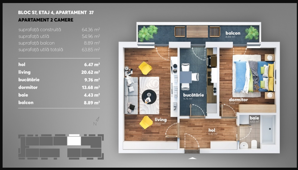 Apartament cu vedere la parc, foarte aproape de mijloace de transport in comun, magazine, supermarketuri. Mobila de bucatarie si toate electrocasnicele sunt noi. Parcare,