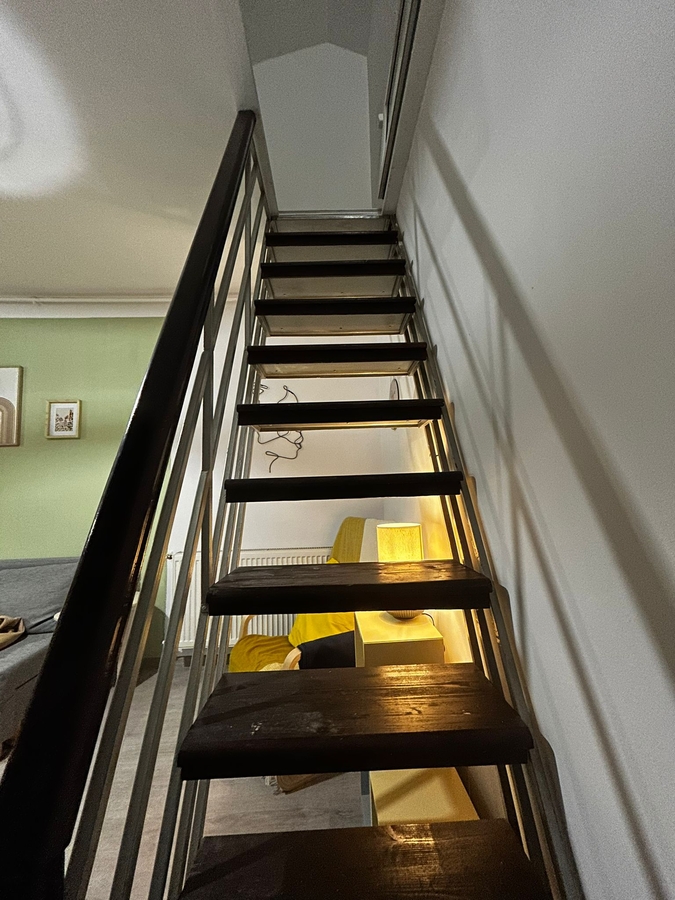 -mansarda este amenajata ca un al doilea dormitor, are baie suplimentara, are un spatiu de depozitare, este incalzita, are doua ferestre Velux catre cer iar accesul se face pe o scara directa;