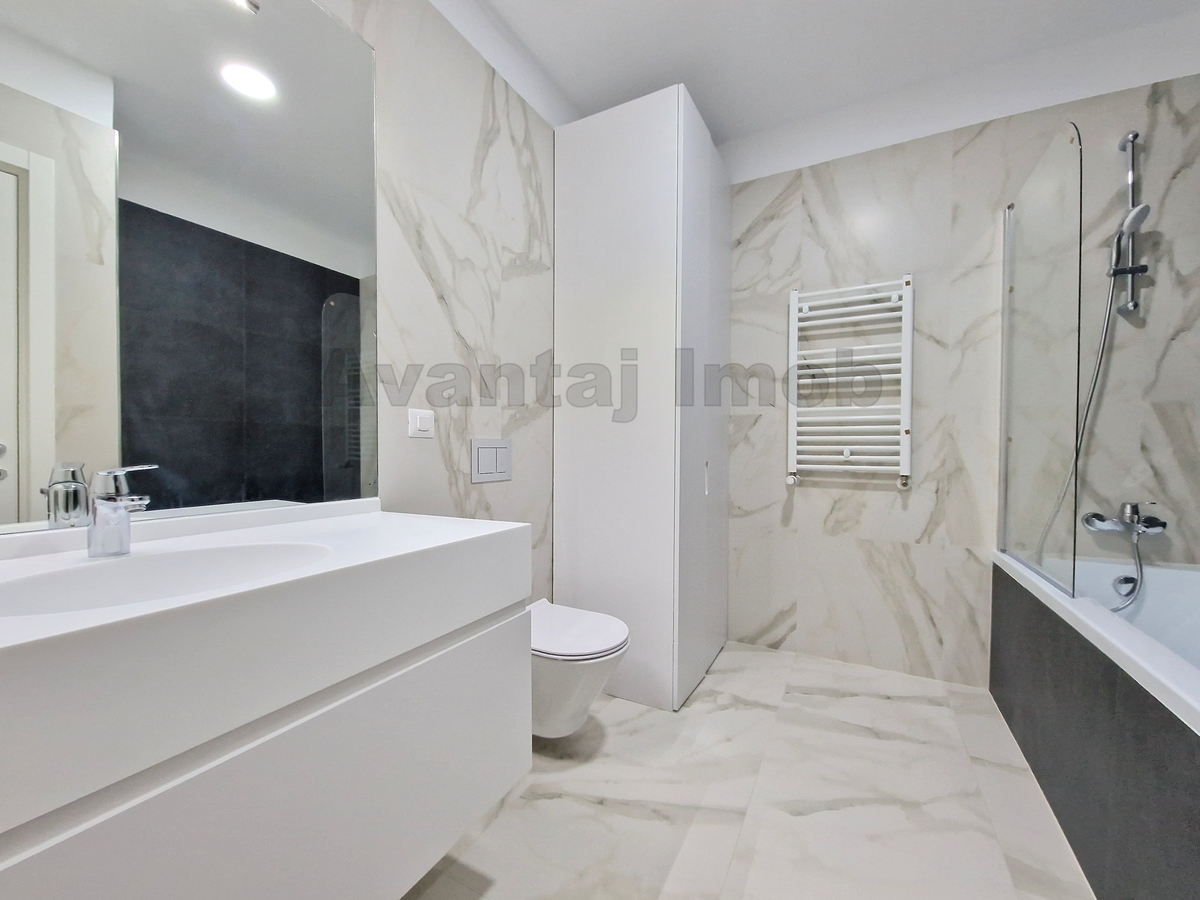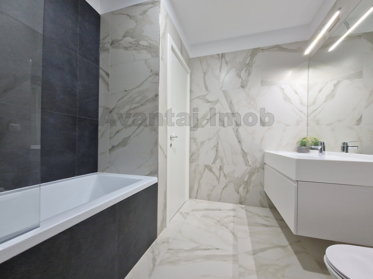 Beneficiaza de un living open space cu zona de bucatarie, multiple spatii depozitare, este extrem de luminos, baie spatioasa cu cada, terasa in suprafata de 10 mp.