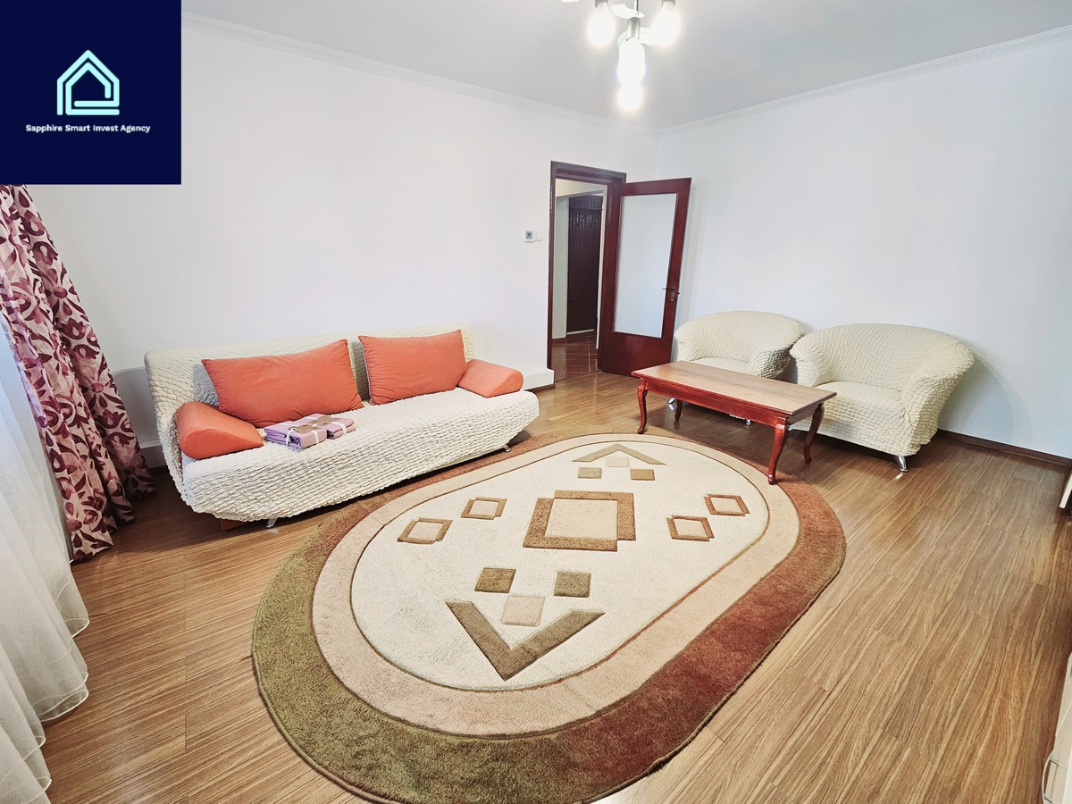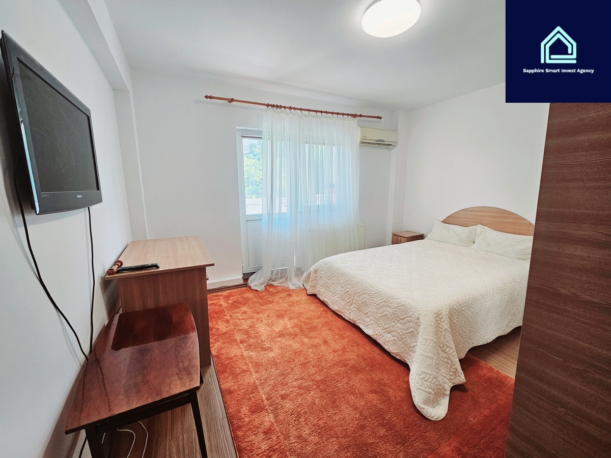 Inchiriez apartament de 3 camere decomandat, cu 2 bai, proaspat renovat, fiind la prima inchiriere, mobilat si utilat, loc de parcare, bloc reabilitat, centrala proprie, an 1990, etaj 4/8, pret neg.