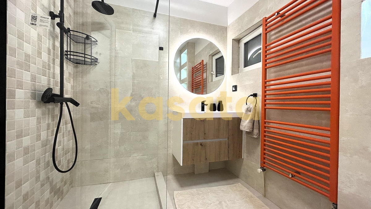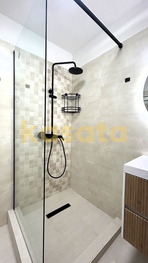 Livingul este confortabil si luminos, iar bucataria inchisa, spatioasa, cu loc de luat masa, ofera acel sentiment real de „acasa”, nu doar functionalitate.