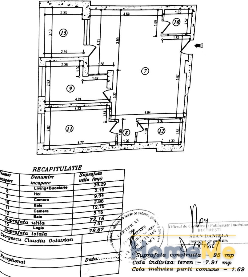 Optiuni interior: Centrala Internet Repartitoare 2 gr. sanitare Aragaz Frigider Liber Televizor Aer conditionat Balcon Inst. electrice noi Masina de spalat Termopan Inst. sanitare noi Renovat Usa metalica