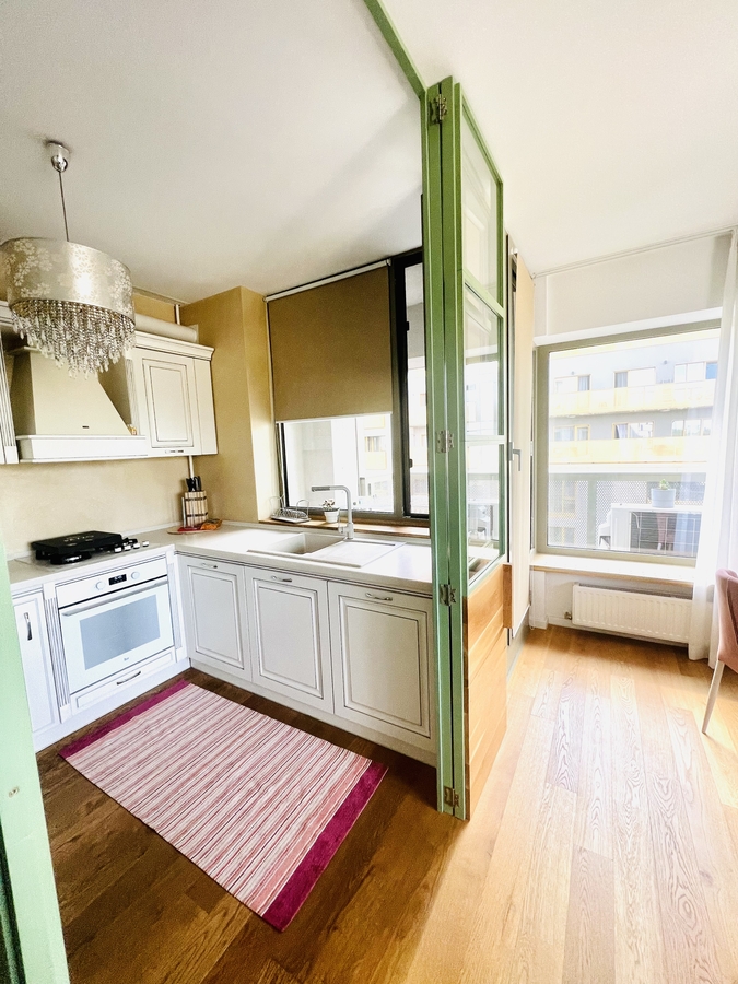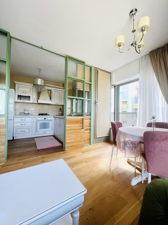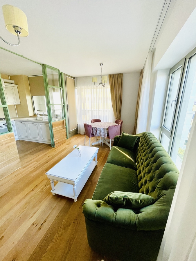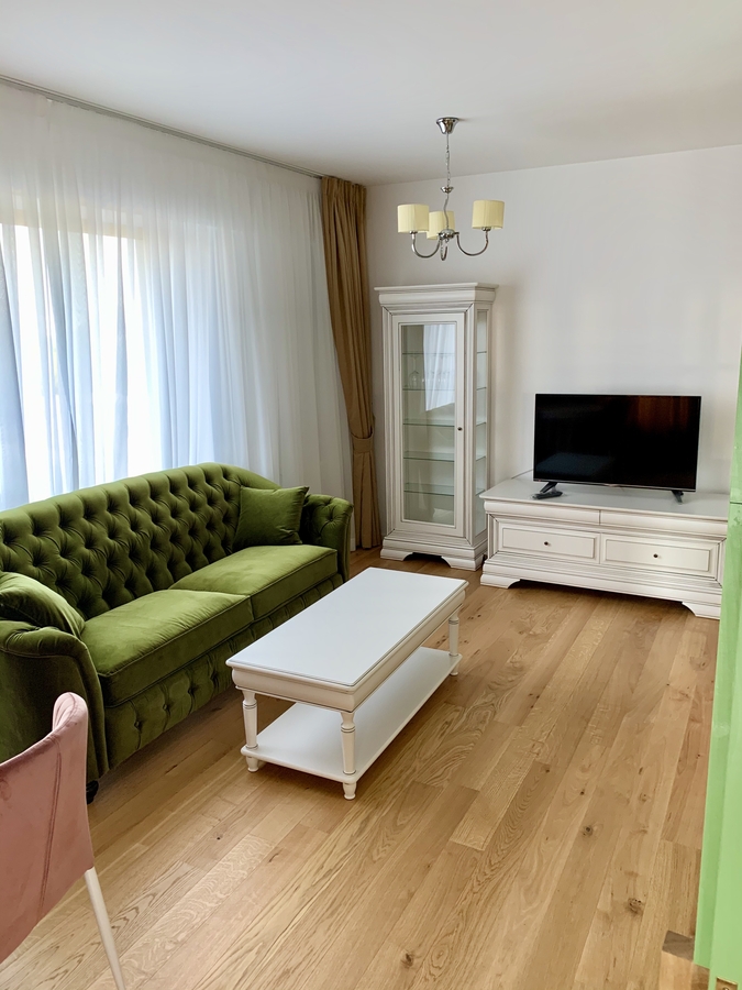 apartamentul este situat in ansamblul rezidential Aviatiei Park construit in 2019, etaj 3/9, are o suprafata totala de 80 mp. Dispune de finisaje de lux, bucatarie inchisa cu mobila de lemn fag, A.C Daikin in fiecare camera, balcon si parcare subterana, paza 24/7 si sistem de supraveghere imobil. Loc de joaca pentru copii, teren de basketball/Fotbal, langa Lidl si Mega Image.