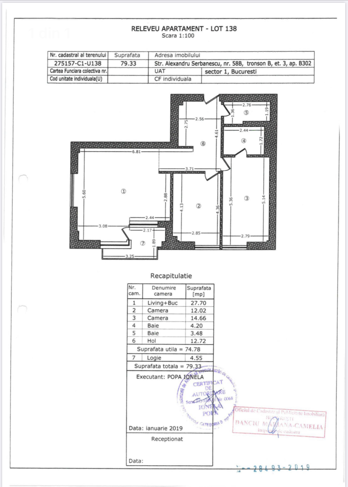 Optiuni interior: Apometre Centrala 2 gr. sanitare Aragaz Frigider Liber Televizor Aer conditionat Balcon Inst. electrice noi Masina de spalat Termopan Cablu Inst. sanitare noi Renovat Usa metalica