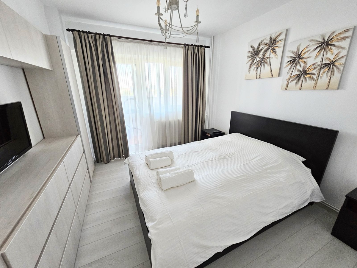 Inchiriez apartament de 3 camere, decomandat cu doua bai, situat la etajul 8 din 10, in bloc construit in 1982.