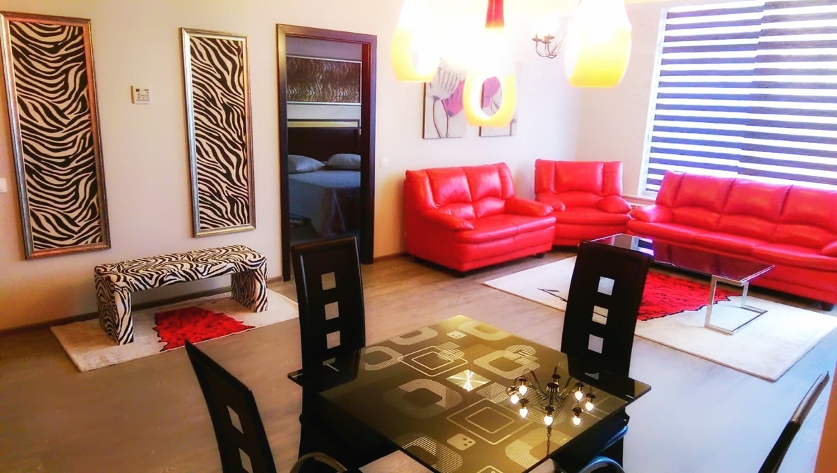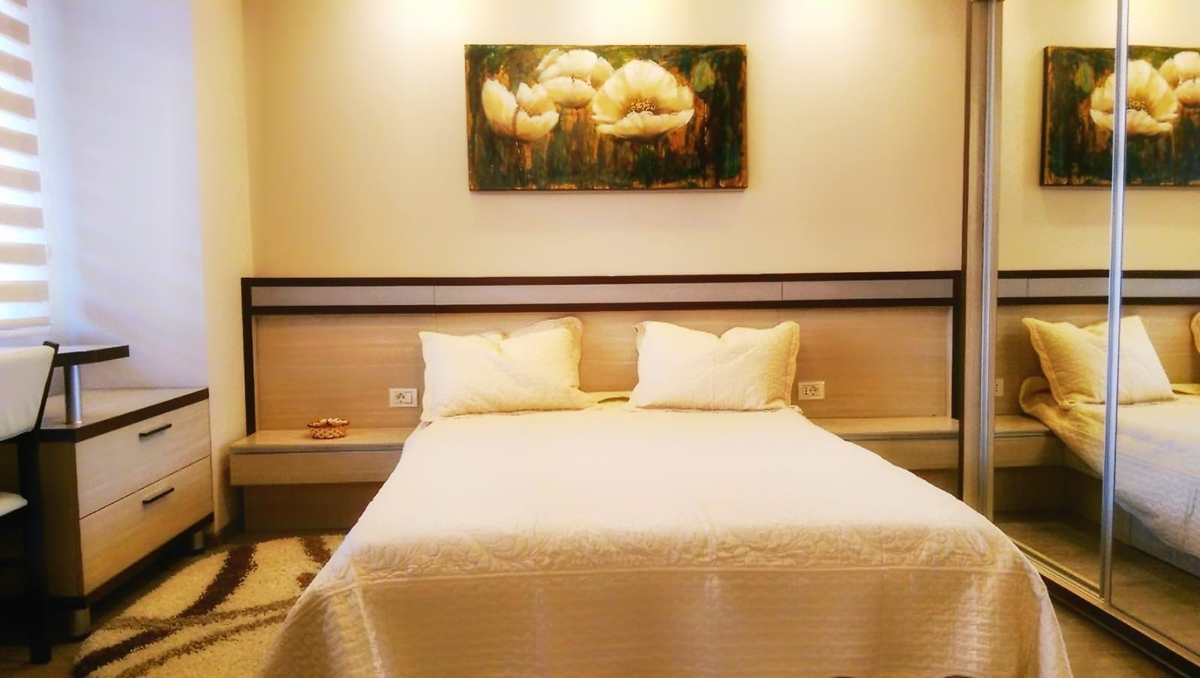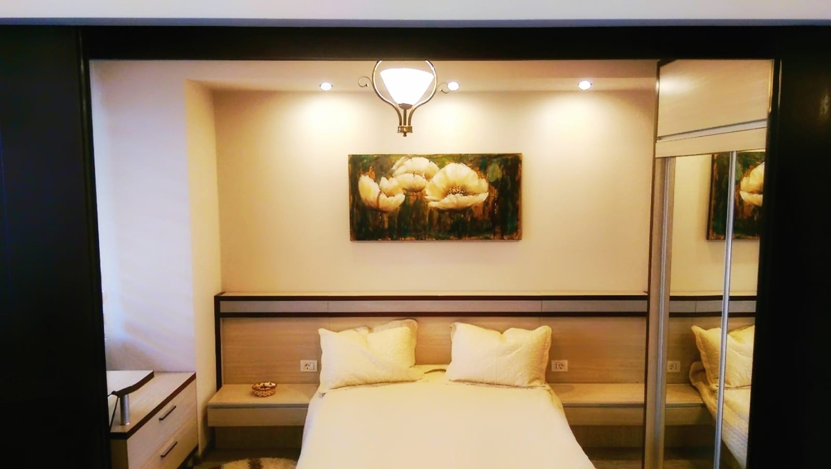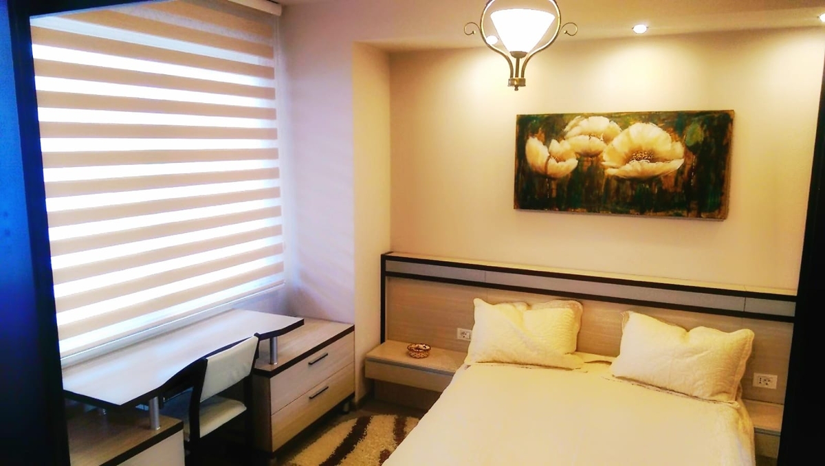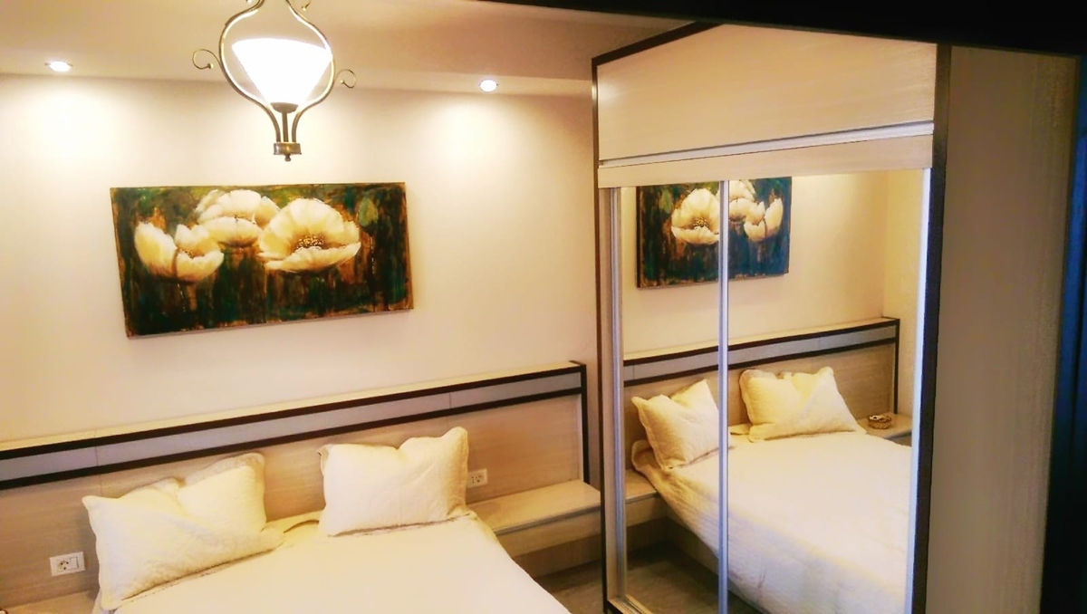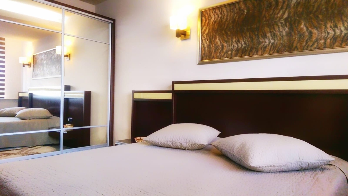 Imobilul are toate imbunatatirile Centrala Proprie de Apartament, Aer Conditionat, instalatii noi, net wifi, cablu, mobilat pe comanda si utilat complet premium. Are doua paturi matrimoniale si o canapea extensibila. Exista dressinguri si spatii incastrate pentru depozitare.