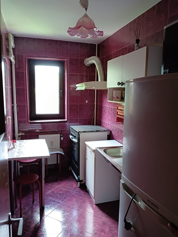 Pta.Moghioros, etajul 4/10, circular, mobilat si utilat complet,gresie, faianta, parchet, termopan, geam la baie, aproape de metrou, liber, 1+1 garantie