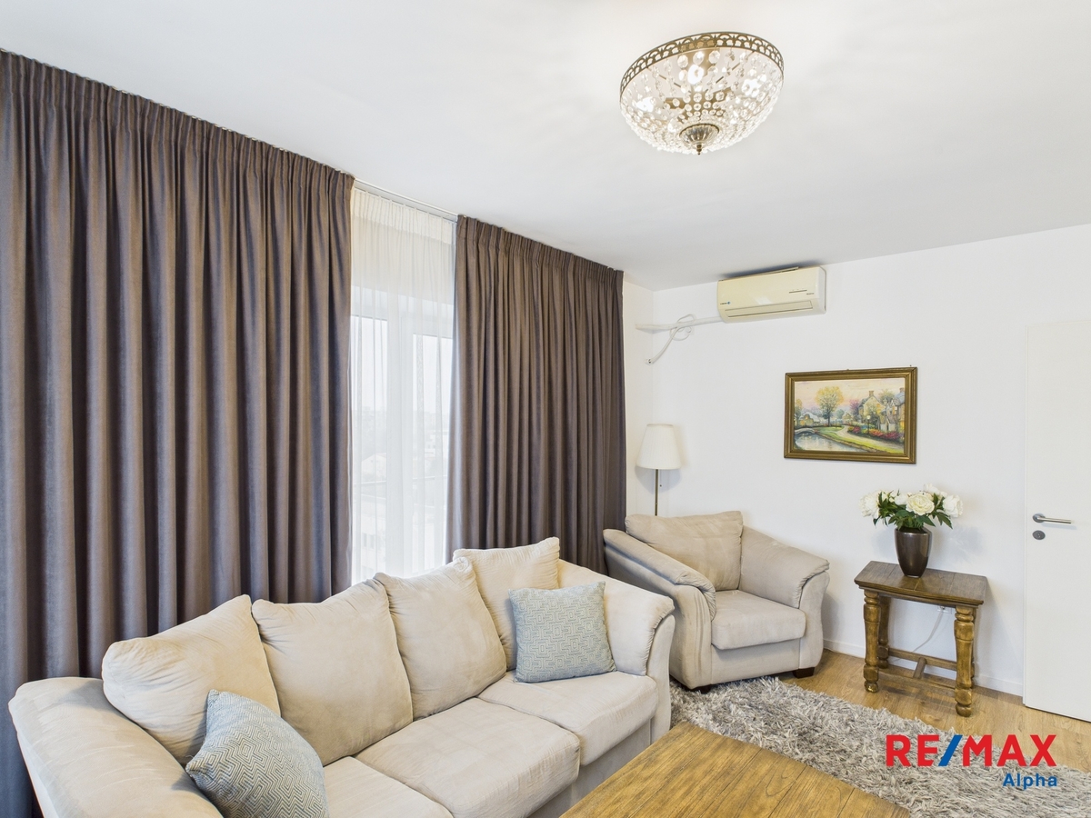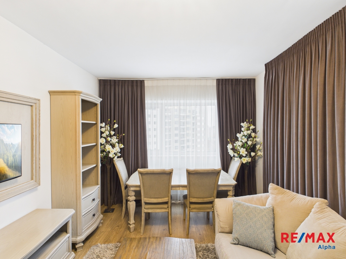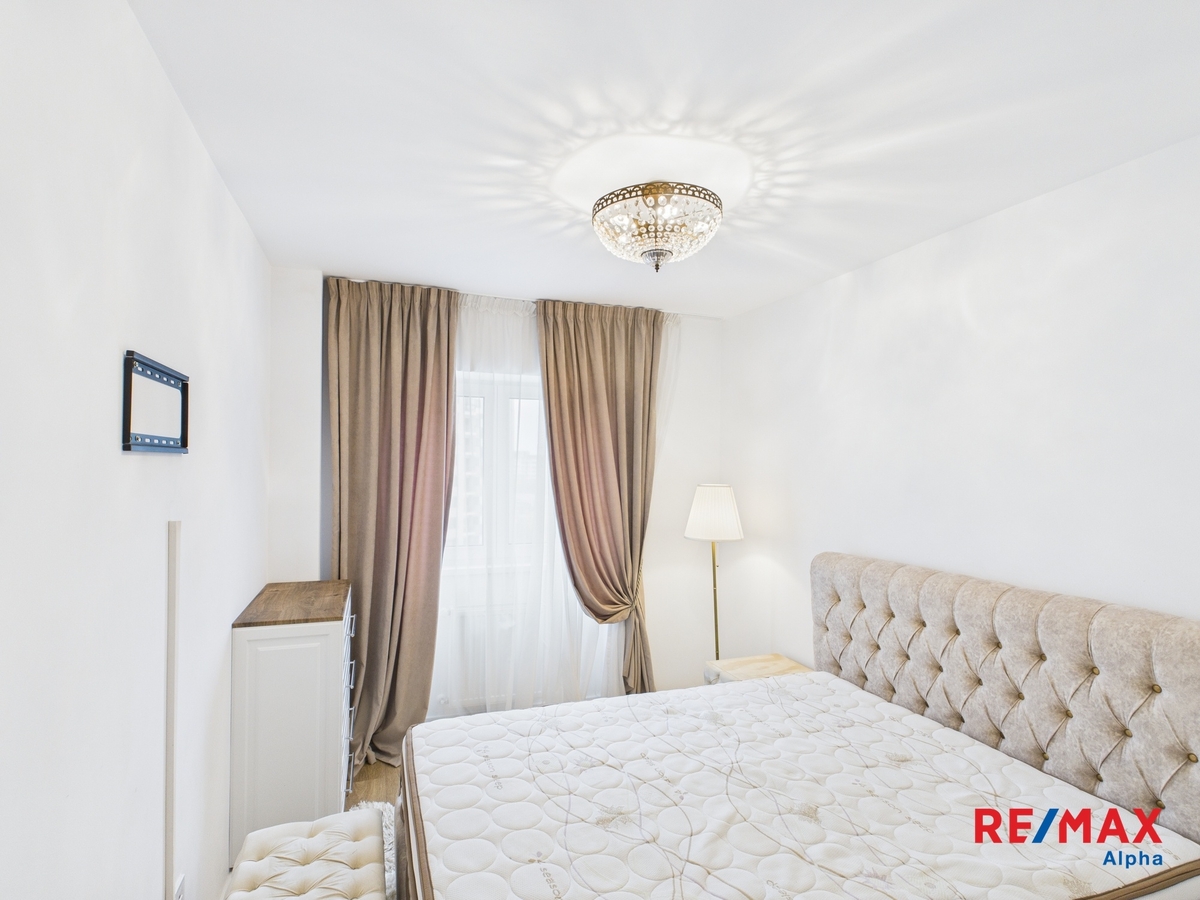 Am placerea sa va prezint un apartament superb cu 3 camere, ultrafinisat, complet mobilat si utilat. Mobilierul este de la Mobexpert, iar electrocasnicele sunt de top: smart TV, aer conditionat cu Wi-Fi in living si dormitor, combina frigorifica incorporata, masina de spalat, centrala proprie etc.