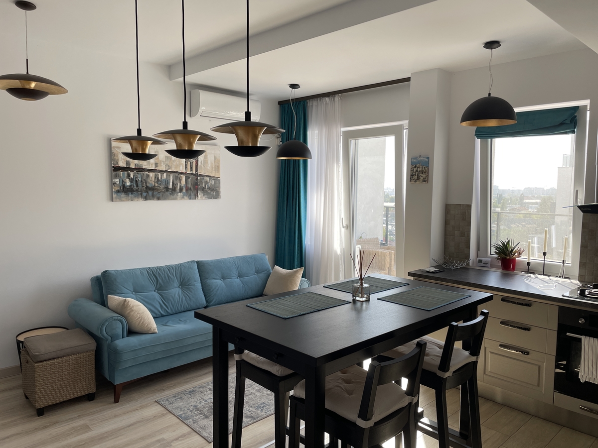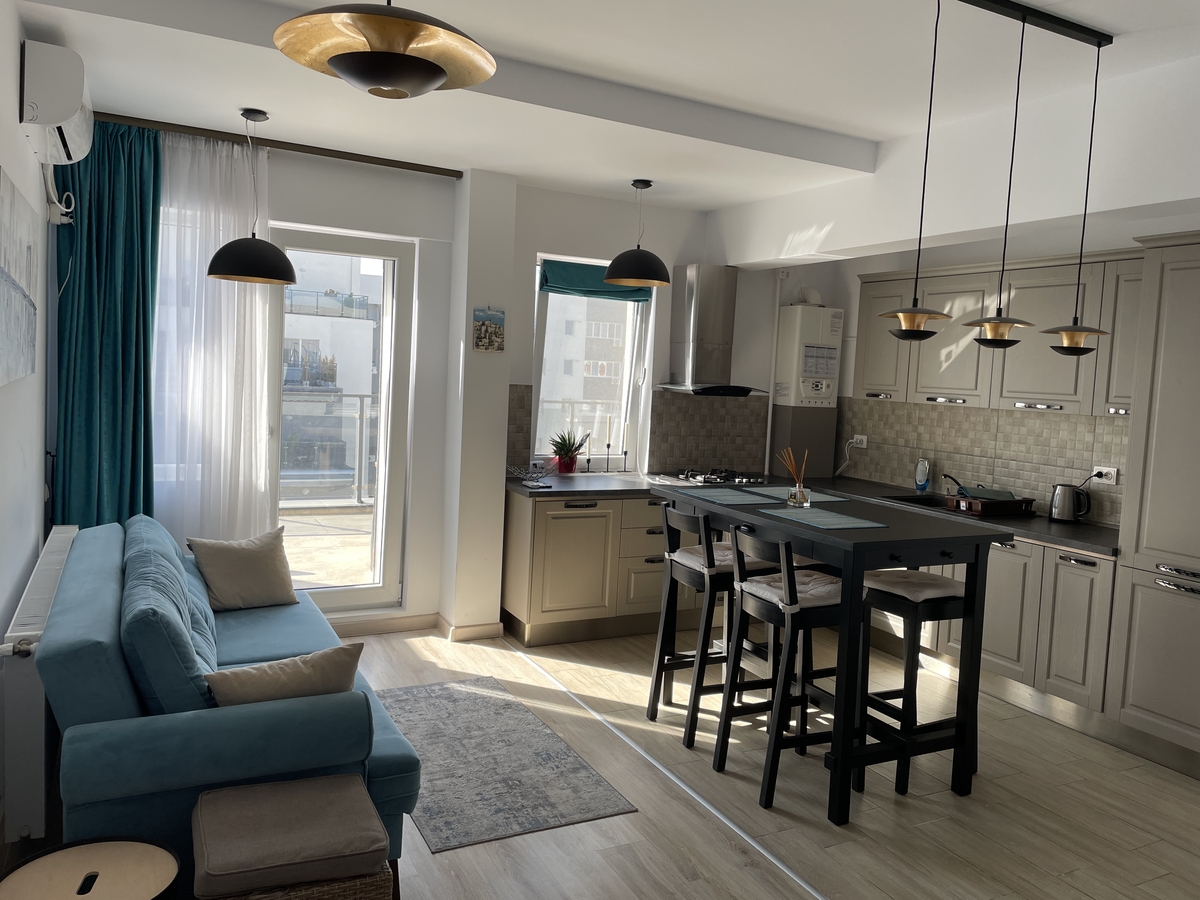 apartament 3 camere, confort 1, semidecomandat, etaj 9/10, liber, mobilat, utilat lux, 93 mp, din care terasa are 28 mp, bloc 2021, frigider, plita gaz, cuptor electric, masina de spalat vase, masina de spalat rufe, centrala proprie, televizor, aer conditionat, finisaje lux, 2 grupuri sanitare, geam la baia mare, termopane parchet, 1 loc parcare acoperit la demisol, o luna chirie, o luna garantie, agentie imobiliara,