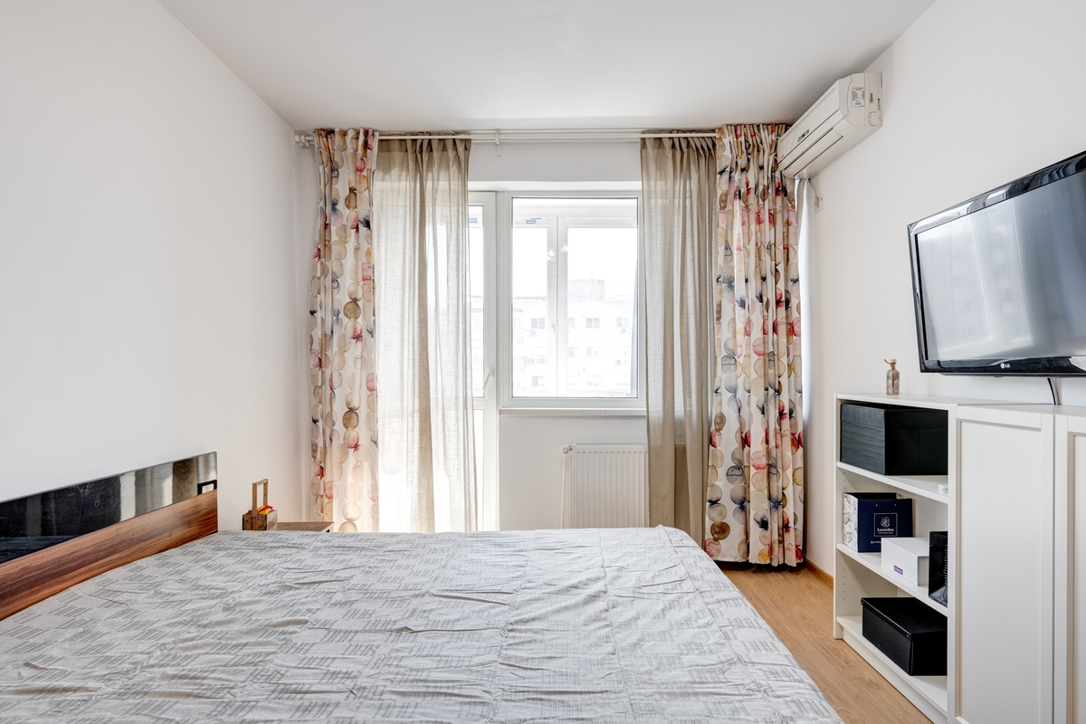 Sunt 2 aparate de aer conditionat - unul in dormitorul orientat spre Sud, care da si spre fata blocului si care si balcon inchis cu termopan - si al doilea in sufragerie.