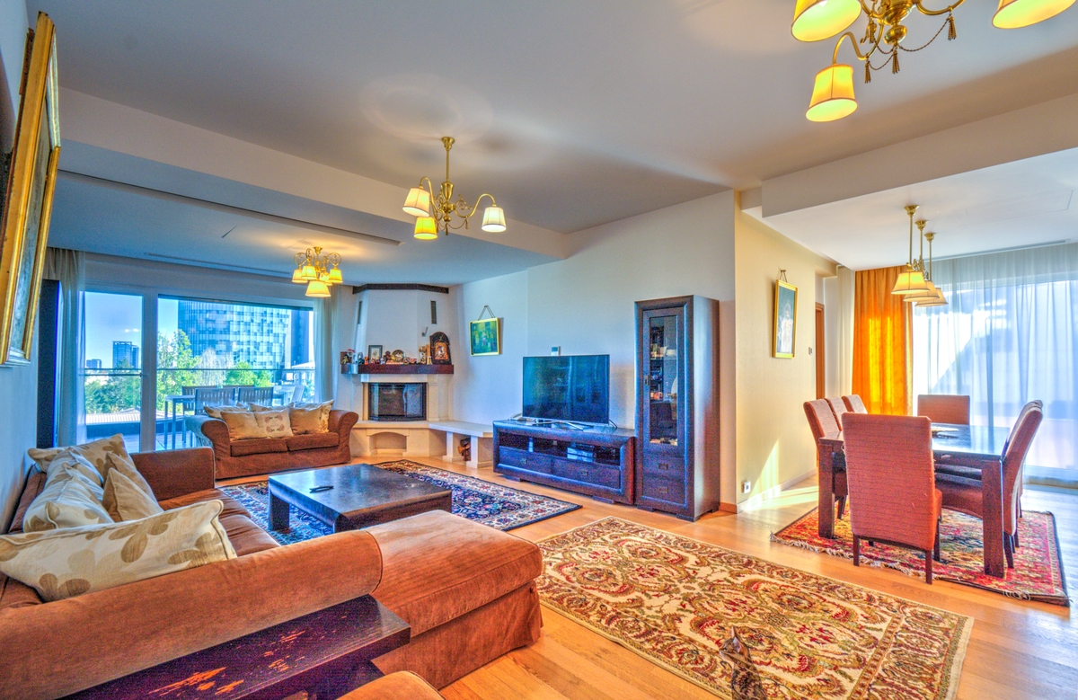 A 038 Penthouse - Apartament 4 camere 215mp, Piata Charles De Gaulle, Metrou Aviatorilor, Kiseleff - Arcul de Triumf, Parcul Herastrau - Regele Mihai. Cladire exclusivista, etajul 5, cu terasa de 40mp, apartamentul are o suprafata utila de 225mp, dispune de un living generos cu semineu pe lemne si zona de dinning, bucatarie utilata complet, 3 dormitoare, 4 bai, dressing walk in, centrala proprie, incalzire in pardoseala, sistem climatizare integrat.