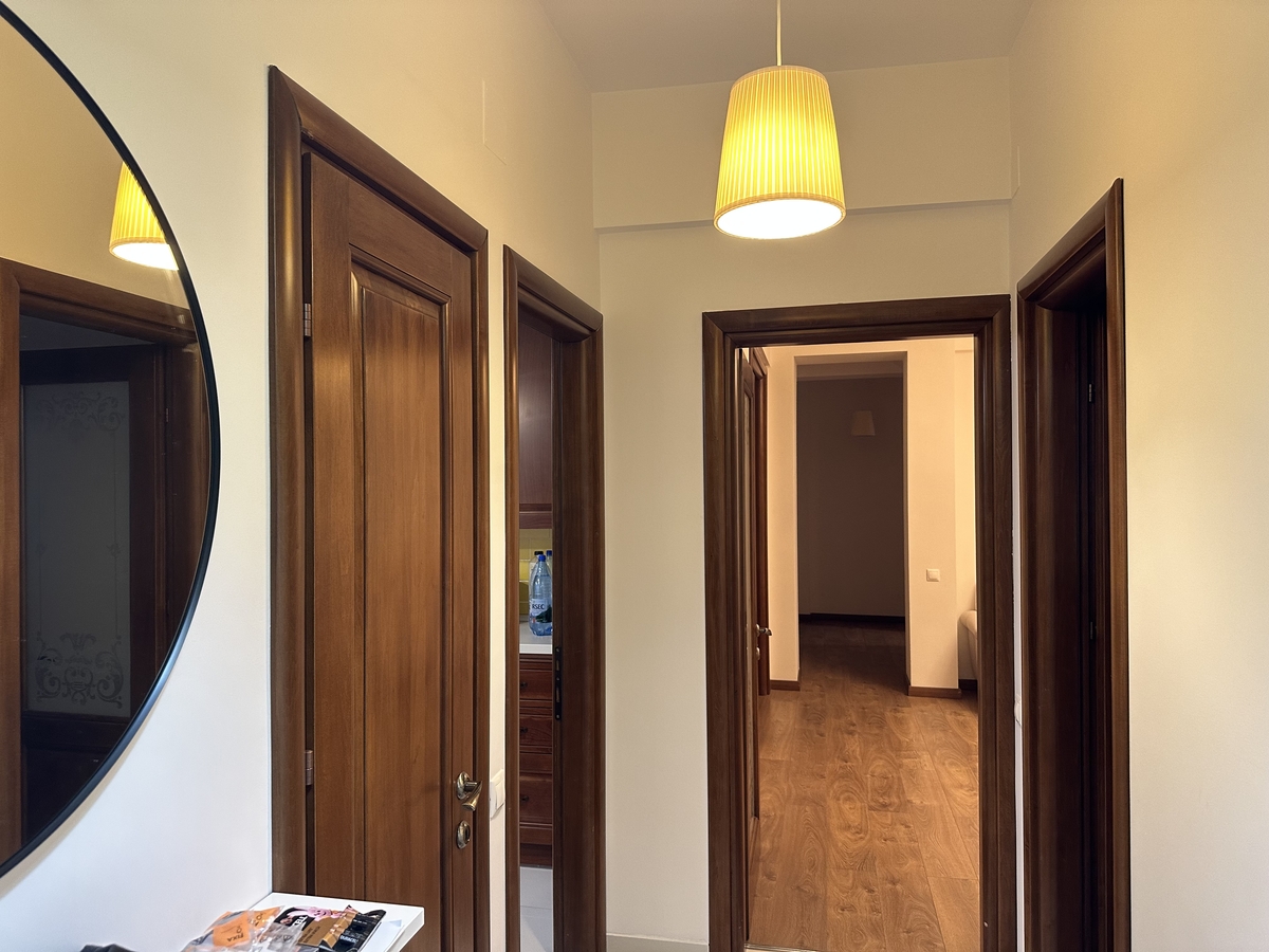 In ceea ce priveste compartimentarea, cei 120 m.p. utili sunt impartiti astfel: la etajul 9 se afla 2 dormitoare mobilate, bucataria complet utilata si o zona de living generoasa cu acces catre balcon, o baie principala dotata cu cada si o baie de serviciu. Din living urca scara interioara cu acces catre etajul 10, unde sunt prezente o camera de zi si o camera depozit, iar din aceasta zona se acceseaza terasa de 40 m.p. Terasa apartamentului este generoasa, fiind perfecta pentru luarea mesei in aer liber sau pentru petrecerea momentelor de relaxare, impreuna cu familia sau prietenii. Apartamentul este ideal pentru o familie sau cuplu, fiind situat intr-o zona ultracentrala, de unde se face accesul cu usurinta catre mijloace de transport, scoli, gradinite, universitati, ambasade, etc.Materialele folosite pentru finisaje sunt din clasa premium, durabile si atent selectate, fiind prezente, cu preponderenta culori naturale, calde. Aceasta proprietate beneficiaza de urmatoarea echipare: centrala termica proprie, 4 unitati de aer conditionat, tamplarie termopan, parchet dublu stratificat, placari cu placi mari de ceramica, electrocasnice (frigider incorporat, cuptor, masina spalat vase, masina de spalat haine, etc.), mobila Mobexpert si Ikea.
