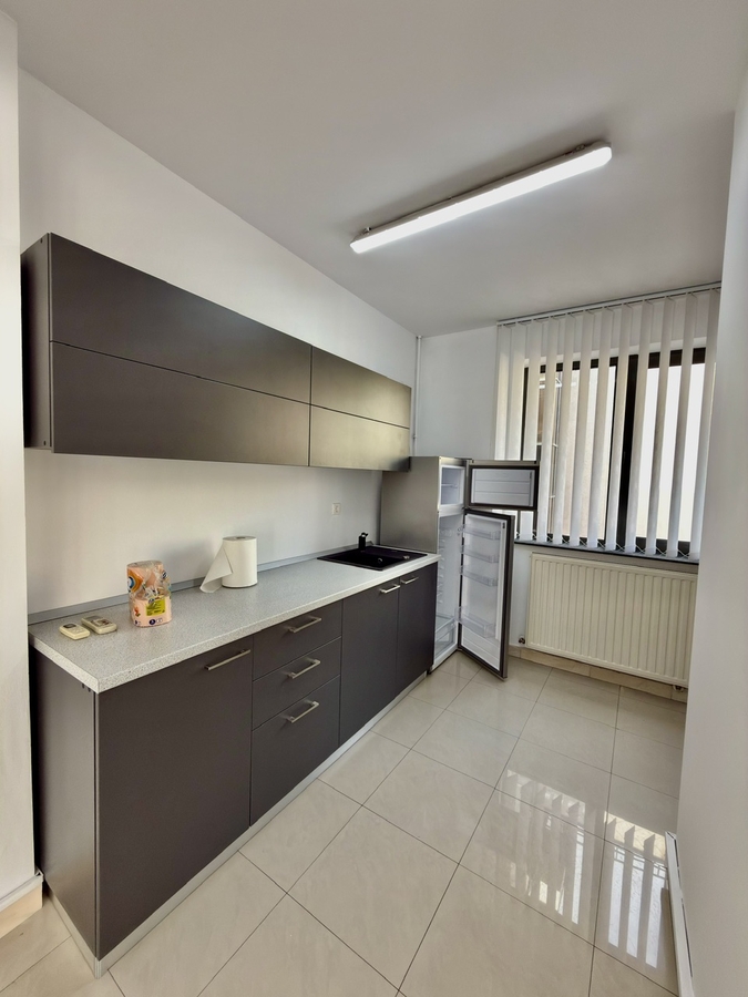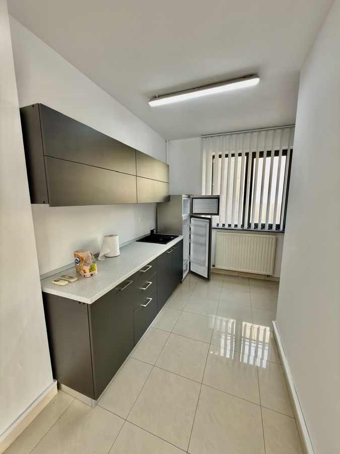 Oferim spre inchiriere spatiu de birou cu suprafata de 85 mp, situat intr-o cladire dedicata exclusiv activitatilor de birou, ideal pentru firme care isi doresc un mediu profesional si acces facil la transport.