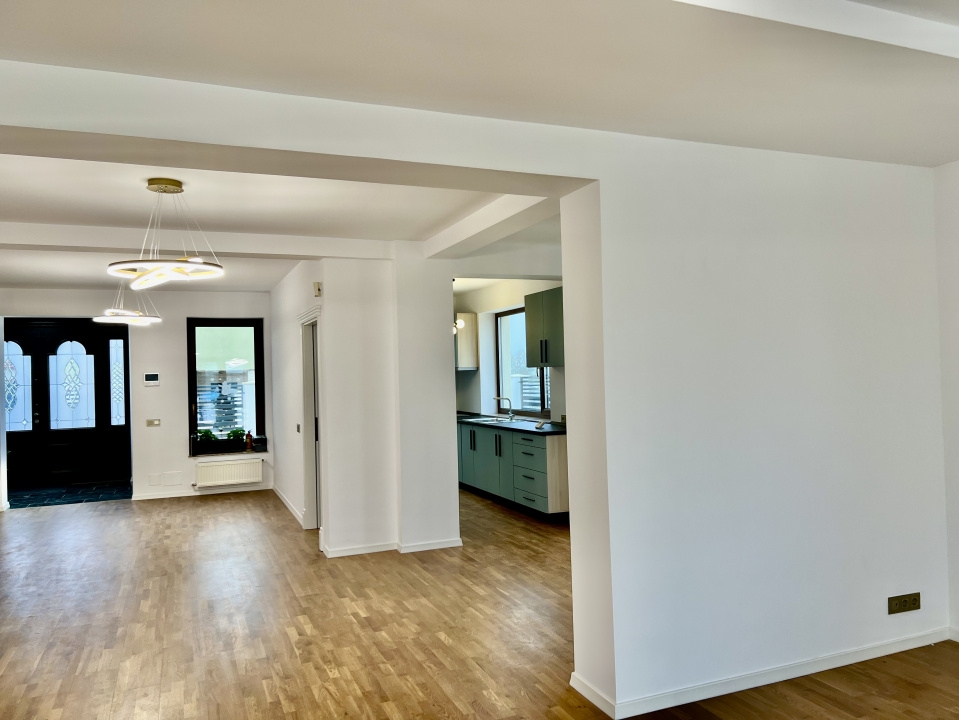 Va prezentam o proprietate deosebita, definita prin linii arhitecturale curate, spatii vitrate largi si o atentie deosebita la executarea finisajelor. Renovarea a fost finalizata in 2026, aflandu-se la prima inchiriere.