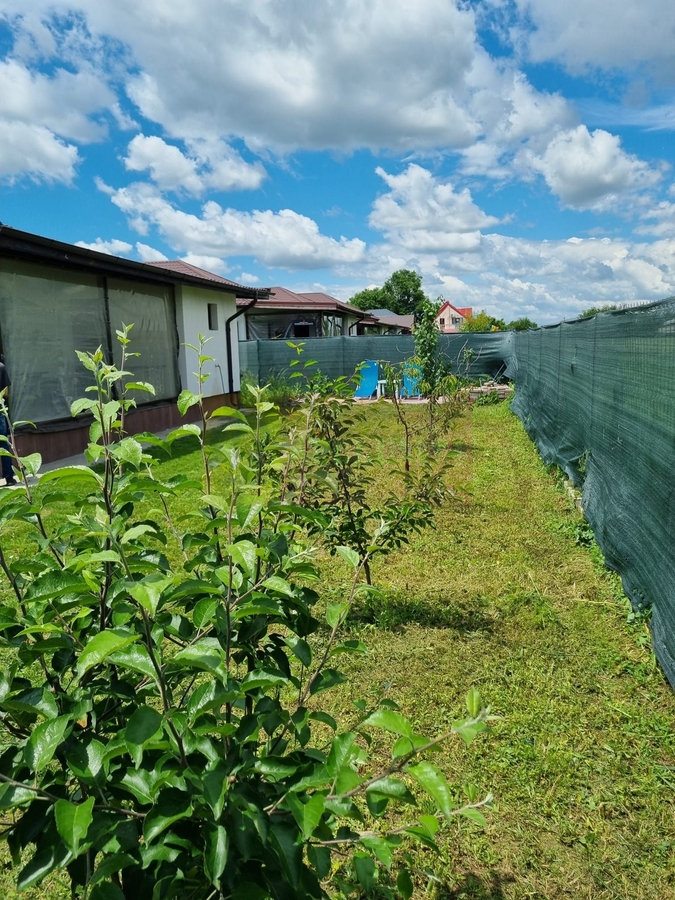 Imobilul se afla la 12 km de Centura de Vest a Bucurestiului, in localitatea Sabareni, invecinata la Nord si la Est cu 2 paduri, intr-o zona rezidentiala noua, pe o strada putin circulata, ferita de traficul rutier. Casa a fost construita in 2021, din caramida, izolata termic, cu ferestre Salamander cu geamuri tripan, finisata complet: gresie, faianta, parchet, obiecte sanitare, la cheie., inclusiv cablu tv si internet DIGI. Terasa acoperita, camera tehnica, pivnita. Curte individuala 534 mp, imprejmuita, trotuare, alei parcare. Se inchiriaza mobilata si utilata, pe termen lung; a fost putin timp locuita. Fara animale de companie.