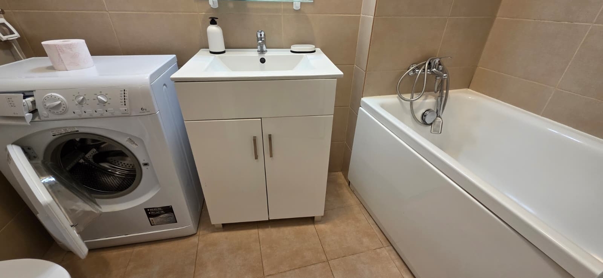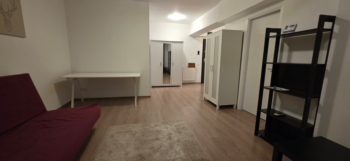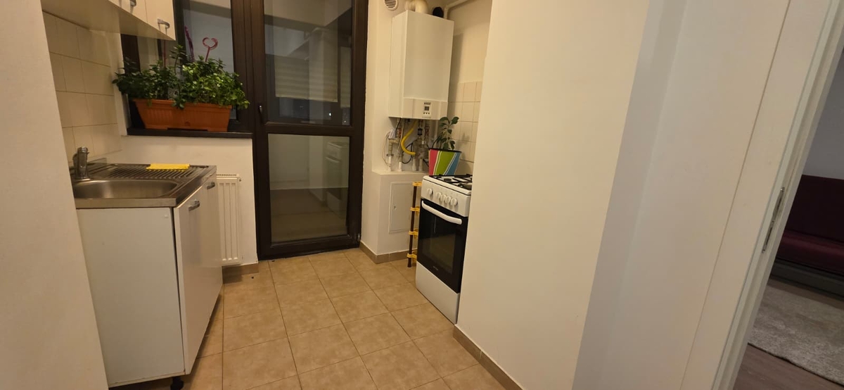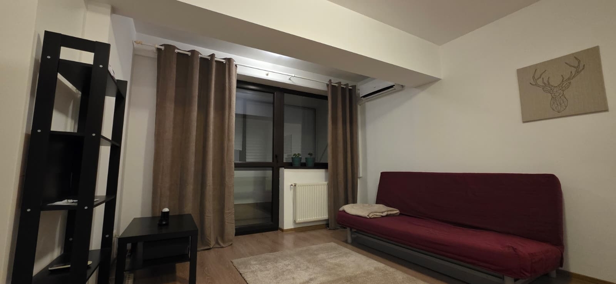 Este dotata cu centrala termica proprie, canapea extensibila Ikea, aer conditionat, masina de spalat, iar bucataria este separata si complet echipata cu aragaz si frigider.