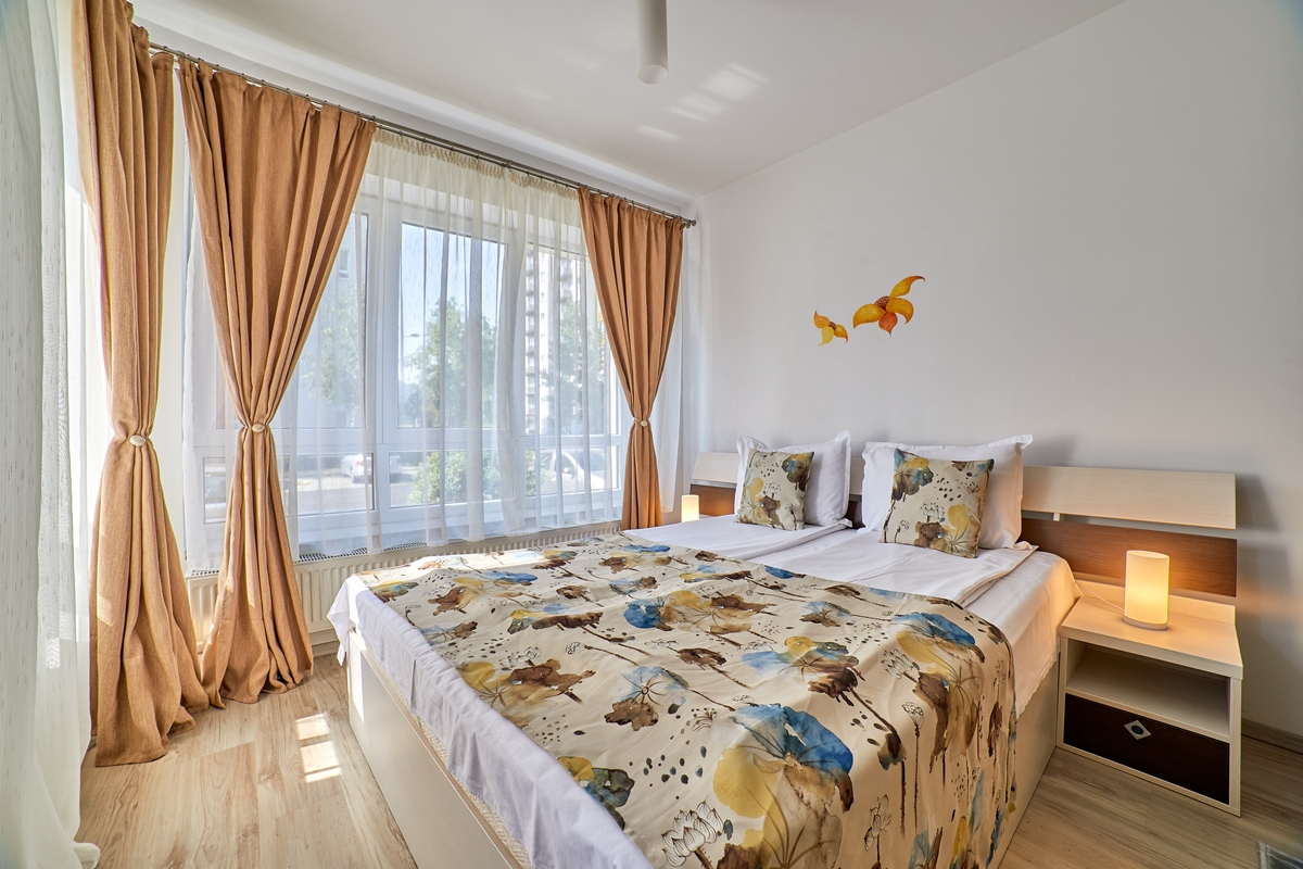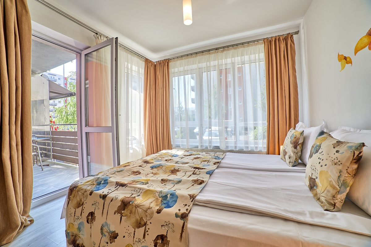 Spatiul este compartimentat, astfel inca sa ofere un plus de confort si generozitate. Camera principala este compartimentata in doua spatii distincte: camera de zi (living) si dormitor (pat matrimonial, draperii black-out, jaluzele verticale mecanice).