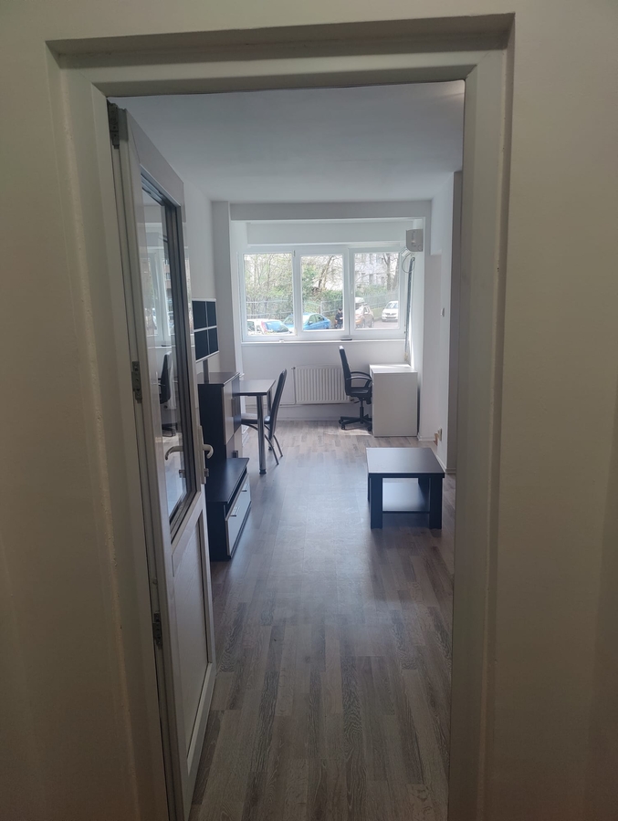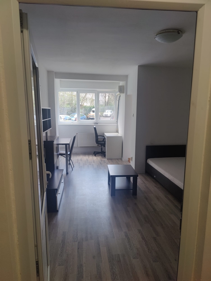 Proprietar, fara comision, ofer spre inchiriere garsoniera cf. 1, decomandat, parter, proaspat renovat, mobiler bucatarie nou, utilat, contorizat, acces facil stradal, pretabil locuit sau cabinet.