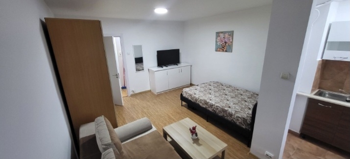 Garsoniera, curata, mobilata, utilata complet, etajul 9/10. Bloc stradal. In imediata apropiere mijloace de transport, Lidl, Mega Mall.